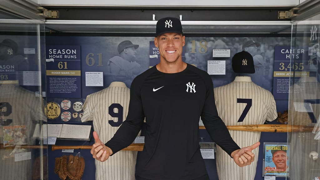 We attempt to avoid the elephant in the museum -- the fact that, of all the players we’ve talked about so far, Judge is the only one who hasn’t tasted October glory. There’s no need to bring it up. Everyone has seen how hard he works toward that goal, every day of every season. But when we try to breeze past the circular case displaying each of the team’s 27 championship prizes, Judge has other ideas, stopping to gaze at the array of diamond-encrusted rings and admiring how they have evolved over the years.