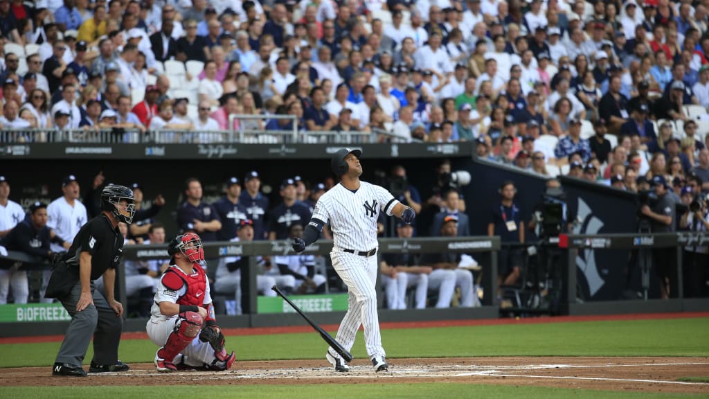 Not to be outdone, Aaron Hicks etched his name into the record books with a two-run homer over the right-field fence, bringing Encarnación home, sending Porcello to the showers and giving the Yankees a 6-0 lead. As the center fielder rounded the bases, a display on the open-air stadium’s two scoreboards showed a graphic that read, “First Home Run in London.”