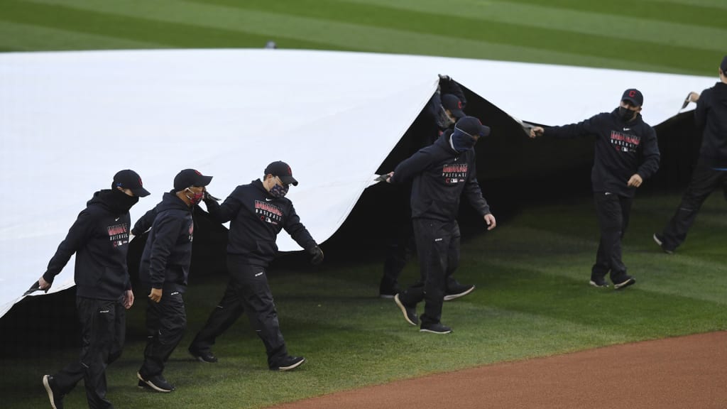 Wednesday's Game 2 of the Yankees-Indians series at Progressive Field on ESPN was delayed because of heavy rain in the area. After a 43-minute delay before first pitch, both teams took the field when the showers started. Carlos Carrasco got through a clean top of the 1st inning, and Masahiro Tanaka allowed a run on two doubles in the bottom of the frame, before the tarp was brought back onto the field.