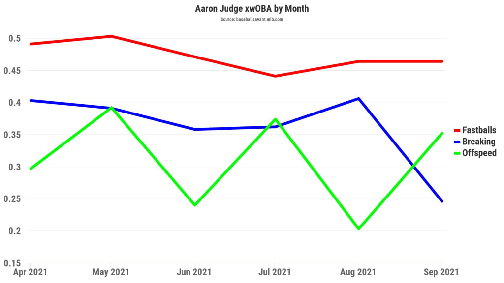 Judge has been a very consistent hitter all season, but he’s seemed to have trouble with offspeed stuff recently: