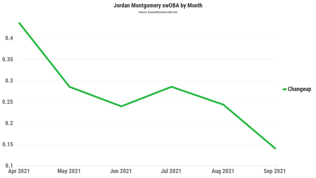 Montgomery has one of the most even five-pitch mixes in baseball, throwing a changeup, curveball, sinker, four-seam and cutter all between 24.8% and 13.7% of the time.