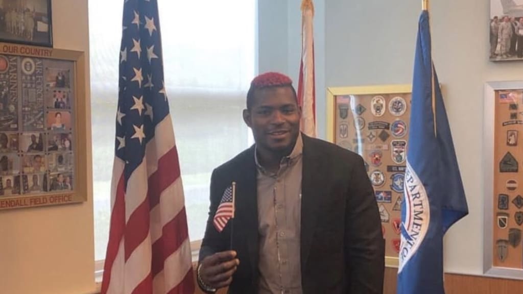 Puig, who defected from Cuba in 2012, posted a photo Wednesday with the message, "Thank you God for this great opportunity to be an American citizen." Thursday, Puig stood at his locker in the visitors clubhouse at Yankee Stadium and talked about the emotions he felt as he passed his test.