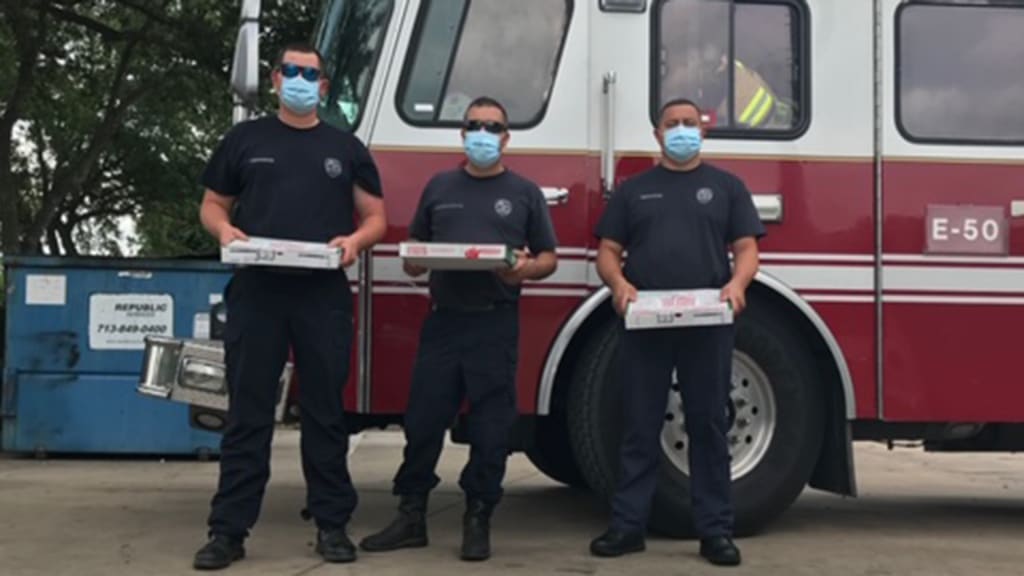 HOUSTON -- Astros slugger Yordan Alvarez and his wife, Monica, provided pizzas to more than 100 police precincts and firehouses in the Houston area on Friday.