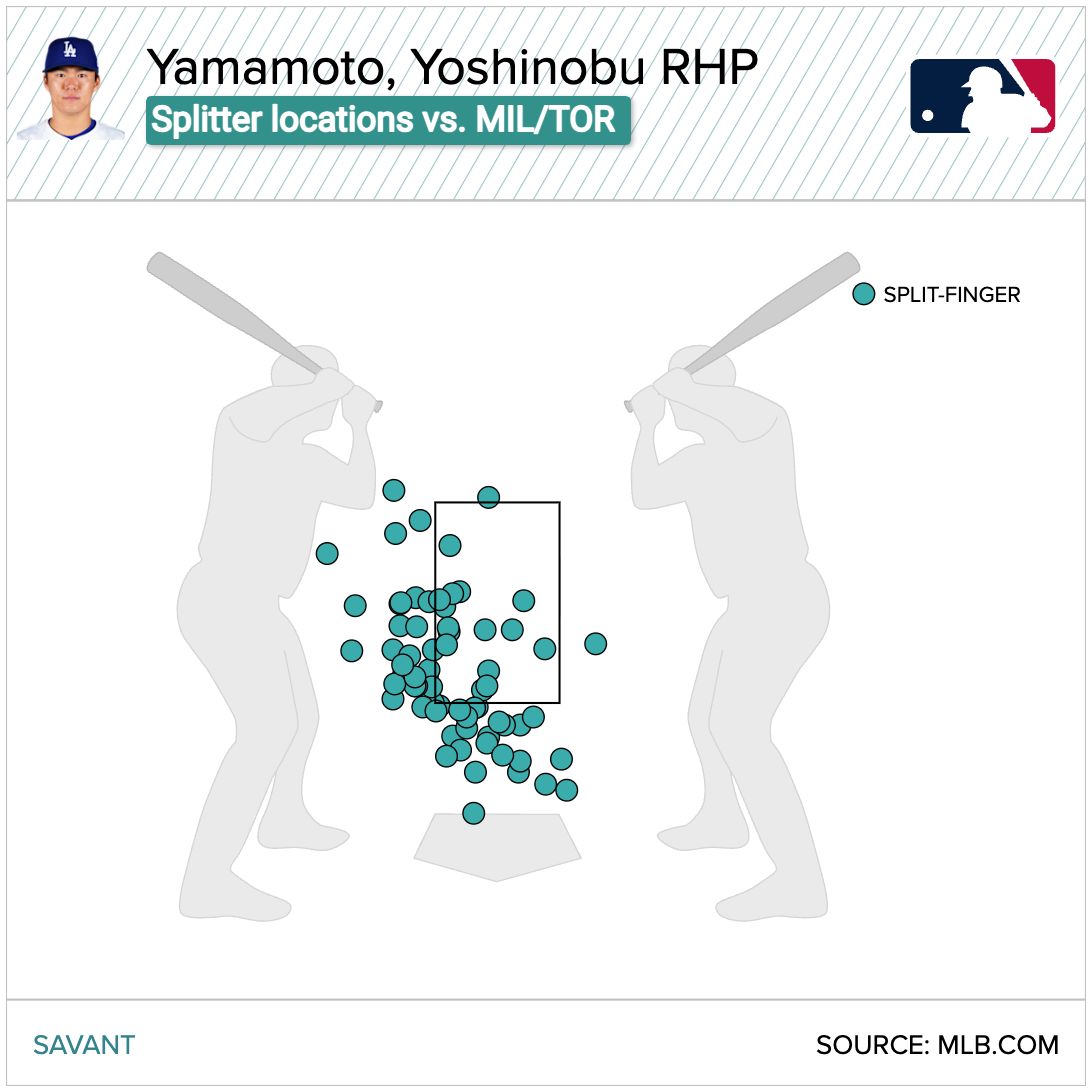Yamamoto heavily deployed his splitter, his very best pitch, to get through Toronto's dangerous hitters at the start of the game.