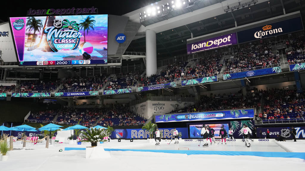 It wasn’t a surprise to see loanDepot park as the center of the hockey world considering the non-baseball sporting events it has showcased since its opening in 2012. In true Miami fashion, the NHL Winter Classic featured beach- and snow-themed flooring to represent Florida and New York, respectively; lifeguard stands; fake frozen iguanas; and more in conjunction with the NHL and Marlins ballpark operations teams.