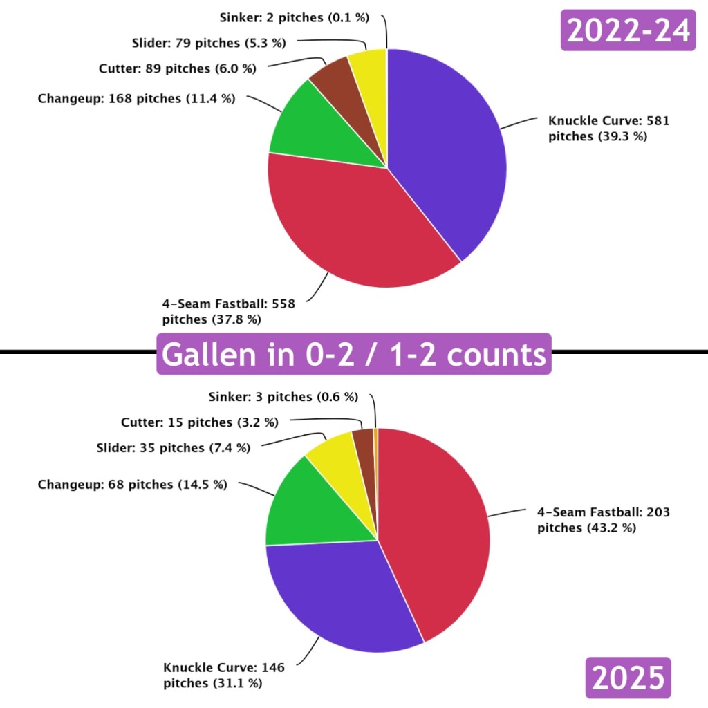 Gallen's knuckle-curve is typically one of the best curveballs in baseball. But he had a much worse curveball performance in 2025, and that was a driving force behind his worse overall performance.
