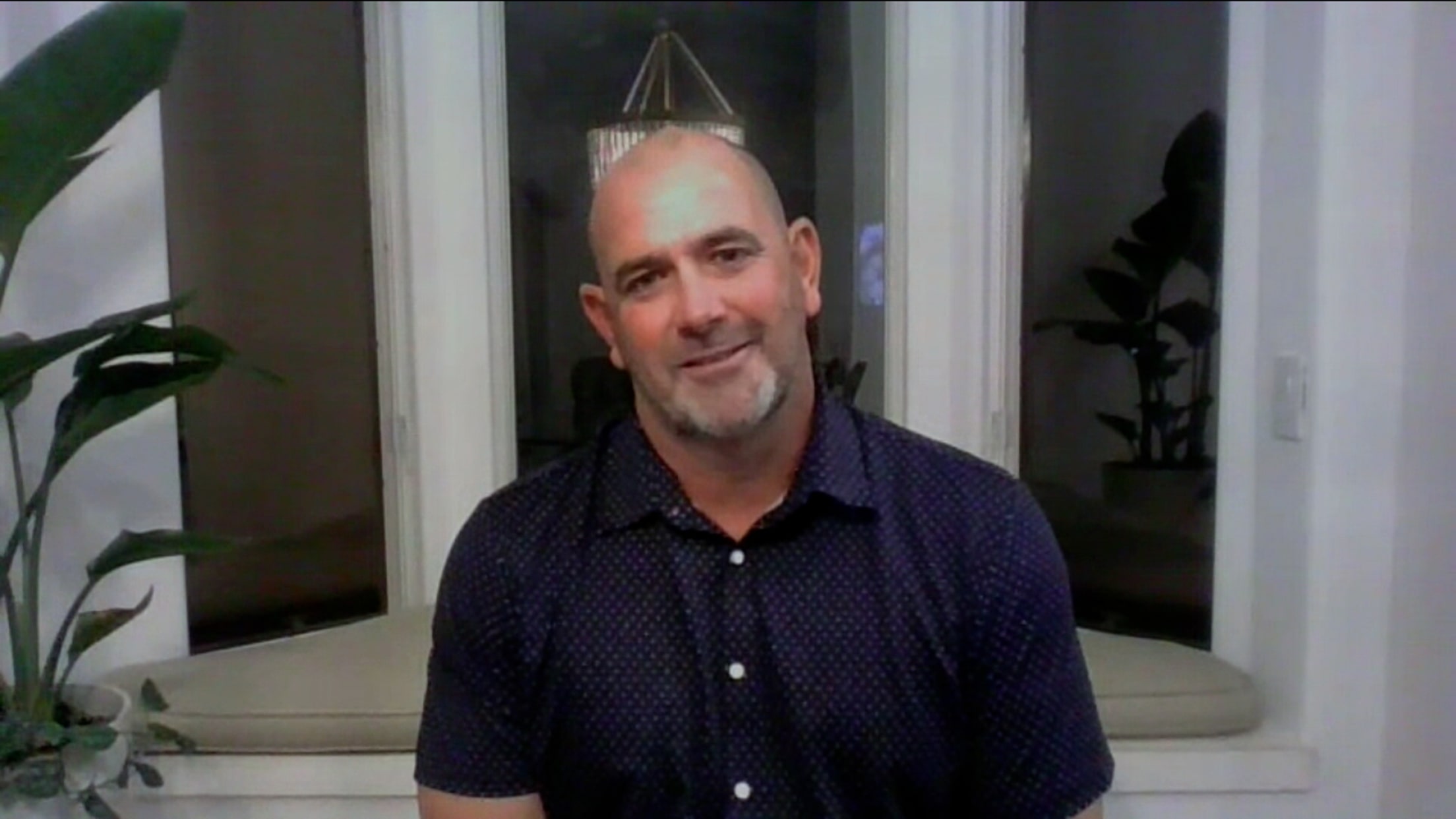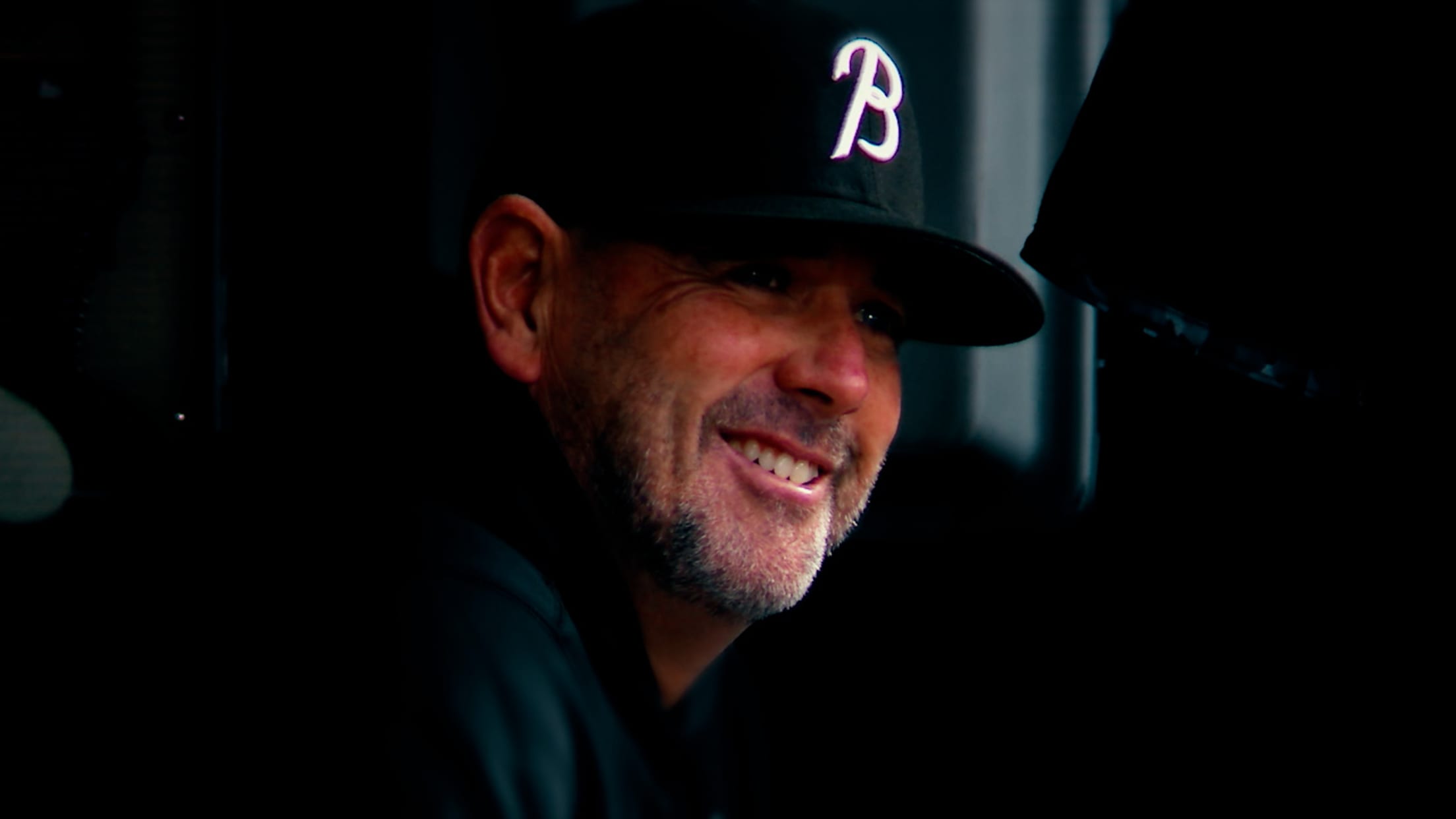 The Orioles' bullpen has some fun with a birthday hat and bubble gum during Mike Baumann's interview