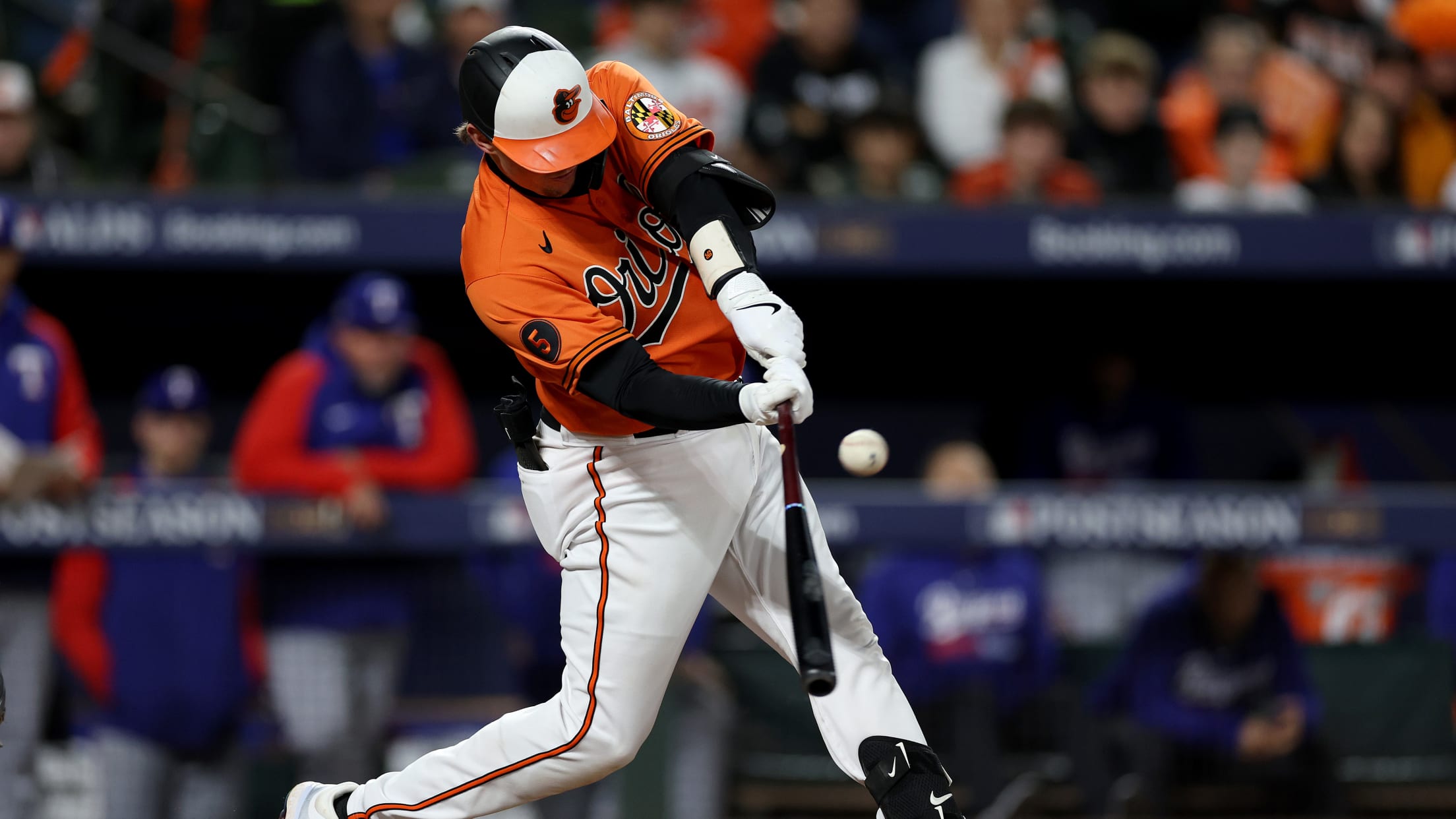 Gunnar Henderson crushes a two-run homer to center field, scoring Adley Rutschman and giving the Orioles an early 2-0 lead