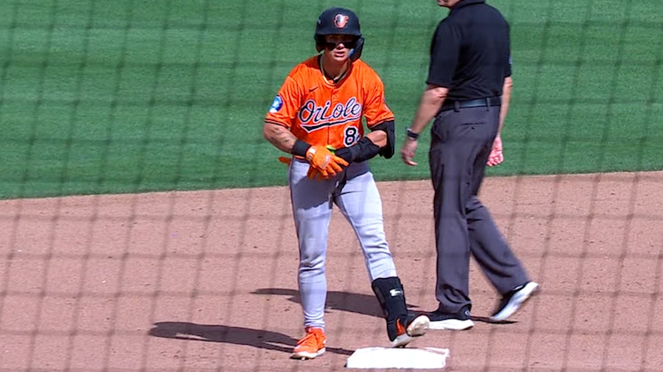 Ryan Mountcastle makes a diving stop at first and tosses to pitcher Kyle Bradish, robbing Rafael Ortega in the top of the 5th