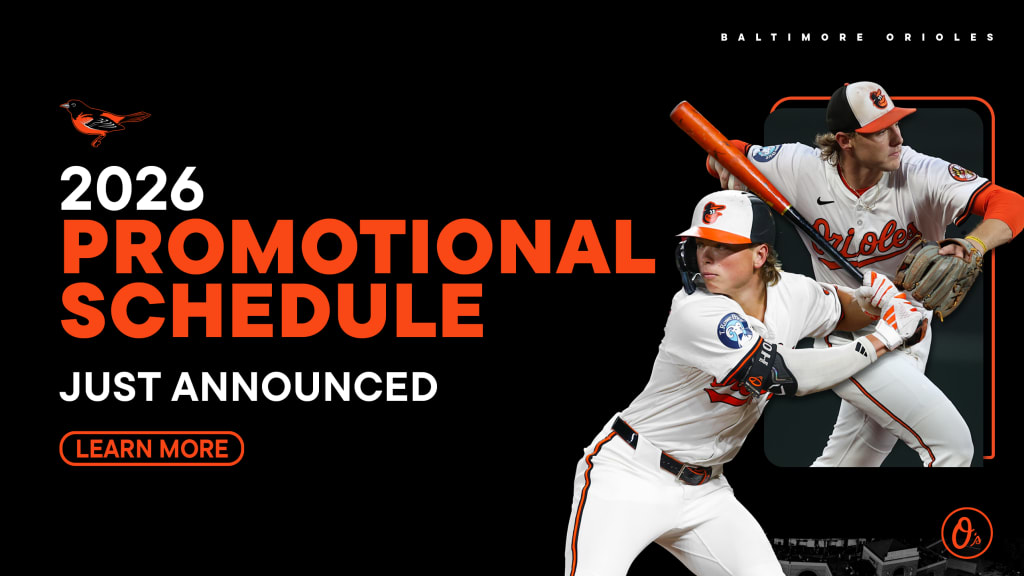 \n\n","providerName":"Twitter","providerUrl":"https://twitter.com","thumbnail_url":null,"type":"oembed","width":550,"contentType":"rich"},{"__typename":"Markdown","content":"Coconut became a star earlier this year after Holliday slugged his second career grand slam during a Bark at the Park night at Camden Yards on April 16. Holliday dedicated the homer to Coconut, who frequently sits in the stands with Holliday’s wife, Chloe, on the dog-filled days.\n\n“Big night for him,” Holliday said at the time.\n\nApril 11 will be an even bigger night for Coconut.\n\n**Samuel Basallo bobblehead, May 23 vs. Tigers (4:05 p.m. ET)**\n\nHolliday isn’t the only one of Baltimore’s young stars getting his first MLB bobblehead this year. Basallo’s bobble will be released less than a year after he made his big league debut for the O’s on Aug. 17.\n\nThis one is sure to be a collector’s item, as Basallo (the Orioles’ No. 1 prospect and MLB Pipeline’s No. 7 overall) is going to be in Baltimore for a long time. The 21-year-old signed an eight-year, $67 million extension with the O’s in August.","type":"text"},{"__typename":"OEmbed","html":"","providerName":"MLB","providerUrl":null,"thumbnail_url":"https://img.mlbstatic.com/mlb-photos/image/upload/ar_121:168,c_fill,g_face/w_121/v1/people/694212/action/vertical/current","type":"oembed","width":425,"contentType":"rich"},{"__typename":"Markdown","content":"**Star Wars Weekend, May 29-31 vs. Blue Jays**\n\nFor the second consecutive year, the Orioles will host a Star Wars Weekend. Camden Yards should again be filled with Star Wars-themed food items, costumes and more.\n\nFans will receive a Jordan Westburg Star Wars bobblehead on May 30 (4:05 p.m. ET). It is not yet known which character Westburg will portray, but it should go well with last year’s bobbleheads that featured Gunnar Henderson and Colton Cowser as Jedis.\n\nA Star Wars kids poster will also be given out on May 31 (1:35 p.m. ET).\n\n**Hot Dog Race caps, July 11 vs. Royals (4:05 p.m. ET)**\n\nThe Orioles introduced a live hot dog race featuring the Camden Franks in 2024, then kept it going during the '25 season. Now, the trio of dogs (Ketchup, Mustard, Relish) is getting its own promotional item.","type":"text"},{"__typename":"Image","caption":null,"contextualCaption":null,"contextualAspectRatio":"raw","credit":null,"contentType":null,"format":"jpg","templateUrl":"https://img.mlbstatic.com/mlb-images/image/upload/{formatInstructions}/v1762736828/mlb/uetw9wvozkowjgrlashy","type":"image"},{"__typename":"Markdown","content":"Will the caps feature all three franks? Will fans have to pick a side and choose from one of three hats at the gate? Either way, this new giveaway should be a popular one.\n\n**Birdland Hawaiian Shirt, July 24-26 vs. Braves**\n\nAfter increasing the number of Hawaiian shirt nights from one to two, the O’s are upping it to three in 2026 -- but with a twist.\n\nTraditional adult-sized Hawaiian shirts will be handed out on both July 24 (7:05 p.m. ET) and July 25 (7:05 p.m. ET). Then, kid-sized Hawaiian shirts will be given to younger fans on July 26 (1:35 p.m. ET).\n\nIt’s sure to be a packed weekend at the ballpark, as the Hawaiian shirt has always been among the most popular giveaway items in Baltimore each year.","type":"text"}],"relativeSiteUrl":"/news/orioles-best-2026-promotional-giveaways","contentType":"news","subHeadline":null,"summary":"This story was excerpted from Jake Rill’s Orioles Beat newsletter. To read the full newsletter, click here. And subscribe to get it regularly in your inbox.","tagline({\"formatString\":\"none\"})":null,"tags":[{"__typename":"InternalTag","slug":"storytype-article","title":"Article","type":"article"},{"__typename":"TeamTag","slug":"teamid-110","type":"team","title":"Baltimore Orioles","team":{"__ref":"Team:110"}},{"__typename":"ContributorTag","slug":"jake-rill","title":"Jake Rill","type":"contributor"},{"__typename":"TaxonomyTag","slug":"apple-news","title":"Apple News","type":"taxonomy"}],"type":"story","thumbnail":"https://img.mlbstatic.com/mlb-images/image/upload/{formatInstructions}/mlb/pej9joeosymgd4exjnks","title":"Orioles' best 2026 promotional giveaways"},"getTeamsBySportId({\"ids\":[1]})":[{"__ref":"Team:133"},{"__ref":"Team:134"},{"__ref":"Team:135"},{"__ref":"Team:136"},{"__ref":"Team:137"},{"__ref":"Team:138"},{"__ref":"Team:139"},{"__ref":"Team:140"},{"__ref":"Team:141"},{"__ref":"Team:142"},{"__ref":"Team:143"},{"__ref":"Team:144"},{"__ref":"Team:145"},{"__ref":"Team:146"},{"__ref":"Team:147"},{"__ref":"Team:158"},{"__ref":"Team:108"},{"__ref":"Team:109"},{"__ref":"Team:110"},{"__ref":"Team:111"},{"__ref":"Team:112"},{"__ref":"Team:113"},{"__ref":"Team:114"},{"__ref":"Team:115"},{"__ref":"Team:116"},{"__ref":"Team:117"},{"__ref":"Team:118"},{"__ref":"Team:119"},{"__ref":"Team:120"},{"__ref":"Team:121"}],"getHeaderFromForgePath({\"contentSource\":\"MLB\",\"headerPath\":\"/_navs/header/bal/global-nav\",\"locale\":\"en-US\",\"paletteKey\":\"t110-base-palette\",\"propertiesKey\":\"t110-global-properties\"})":{"__typename":"Header","navigation":[{"__typename":"NavItem","customPropertiesString":"mobile:true;","icon":null,"linkTarget":null,"linkText":"Tickets","linkUrl":"/tickets","placement":"mobile","visible":null,"subNav":[{"__typename":"SubnavColumn","title":null,"navigation":[{"__typename":"NavItem","placement":null,"linkText":"Single Game Tickets","linkUrl":"/tickets/single-game-tickets","linkTarget":null,"visible":"true","icon":null,"tooltip":null,"customPropertiesString":"appears:1742356740;"},{"__typename":"NavItem","placement":null,"linkText":"Spring Training Tickets","linkUrl":"/tickets/spring-training","linkTarget":null,"visible":"true","icon":null,"tooltip":null,"customPropertiesString":"expires: 1774119600;"},{"__typename":"NavItem","placement":null,"linkText":"Ticket Plans","linkUrl":"/tickets/season-tickets","linkTarget":null,"visible":null,"icon":null,"tooltip":null,"customPropertiesString":""