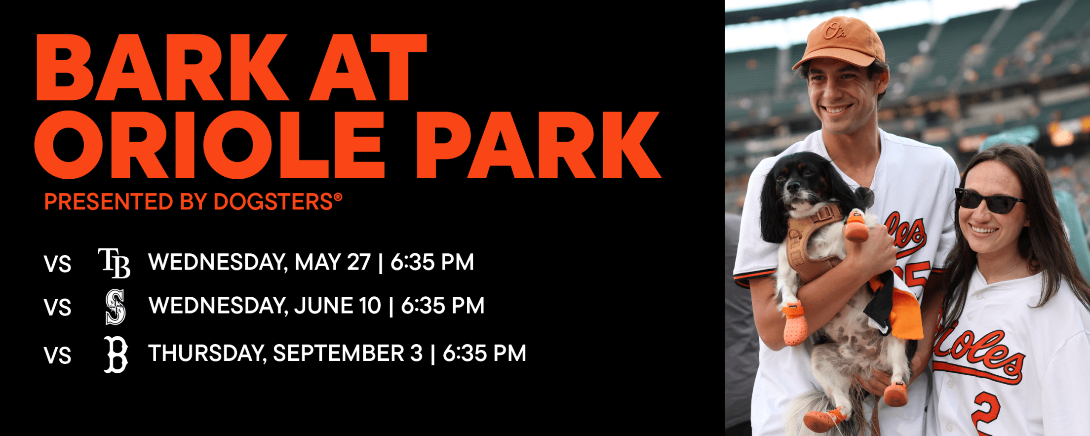 Sit with fellow dog lovers for Bark at Oriole Park! This special ticket package includes your game ticket(s) for you and your dog to sit together at Oriole Park.