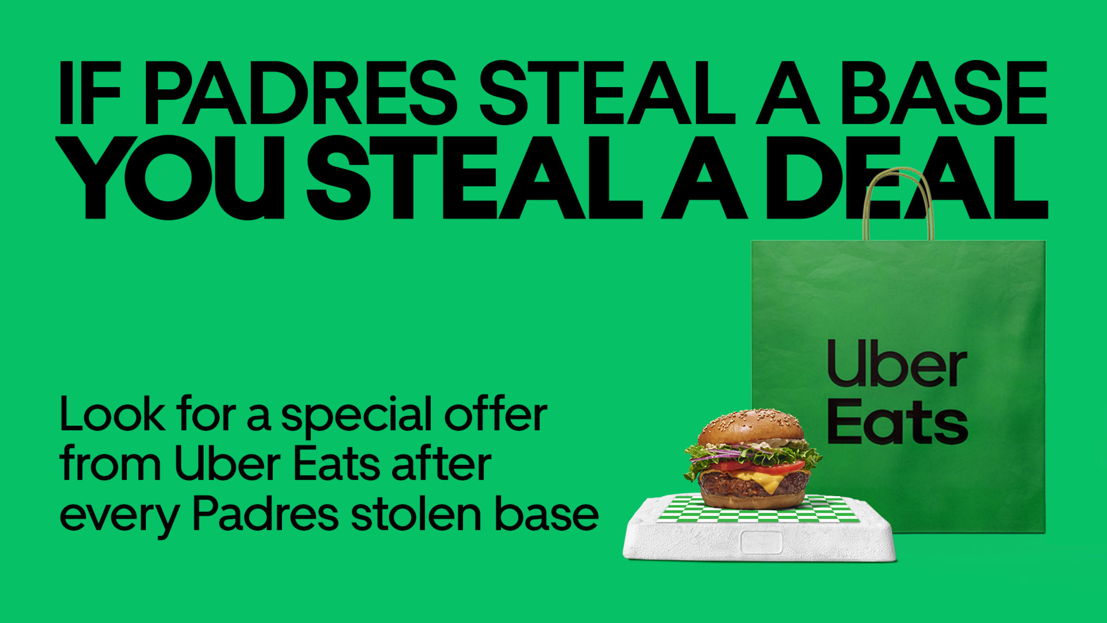 Padres fans get a special offer from Uber Eats after every Padres stolen base. Look out for a special code from Uber Eats and get a deal on contactless delivery for restaurant takeout, groceries and more.