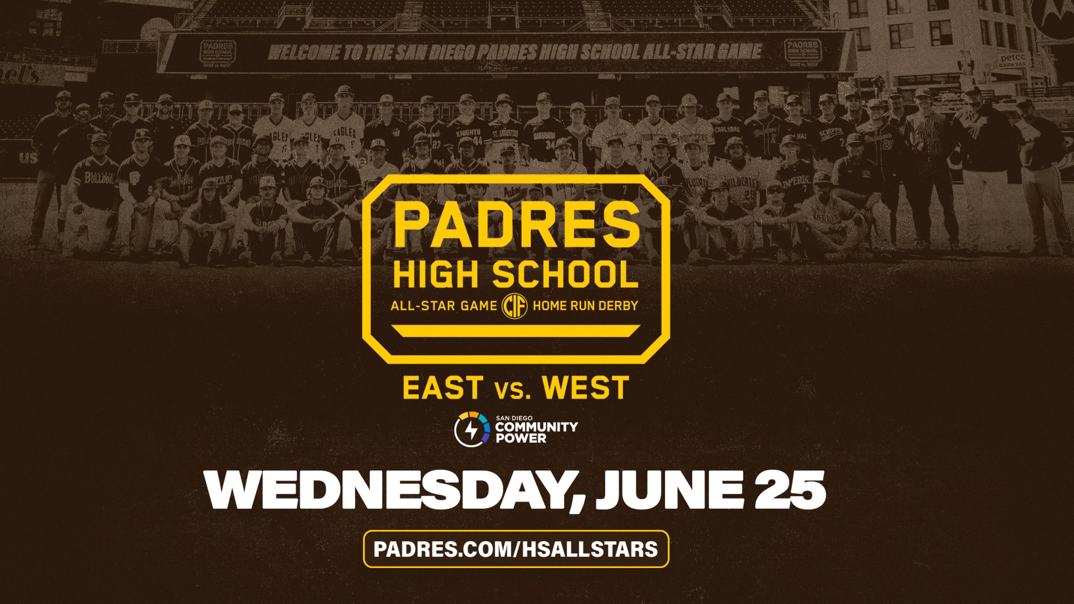 The San Diego Padres will honor the top high school baseball players in the CIF San Diego Section at the Padres High School All-Star Night, presented by San Diego Community Power, on Wednesday, June 25 following the Padres-Nationals game at Petco Park. The All-Star Game will feature the CIF San Diego Section’s best high school players in an exciting East-West format. Some of the top young talent in the country will enjoy this once-in-a-lifetime opportunity to suit up and play in Petco Park, America’s #1 Ballpark.