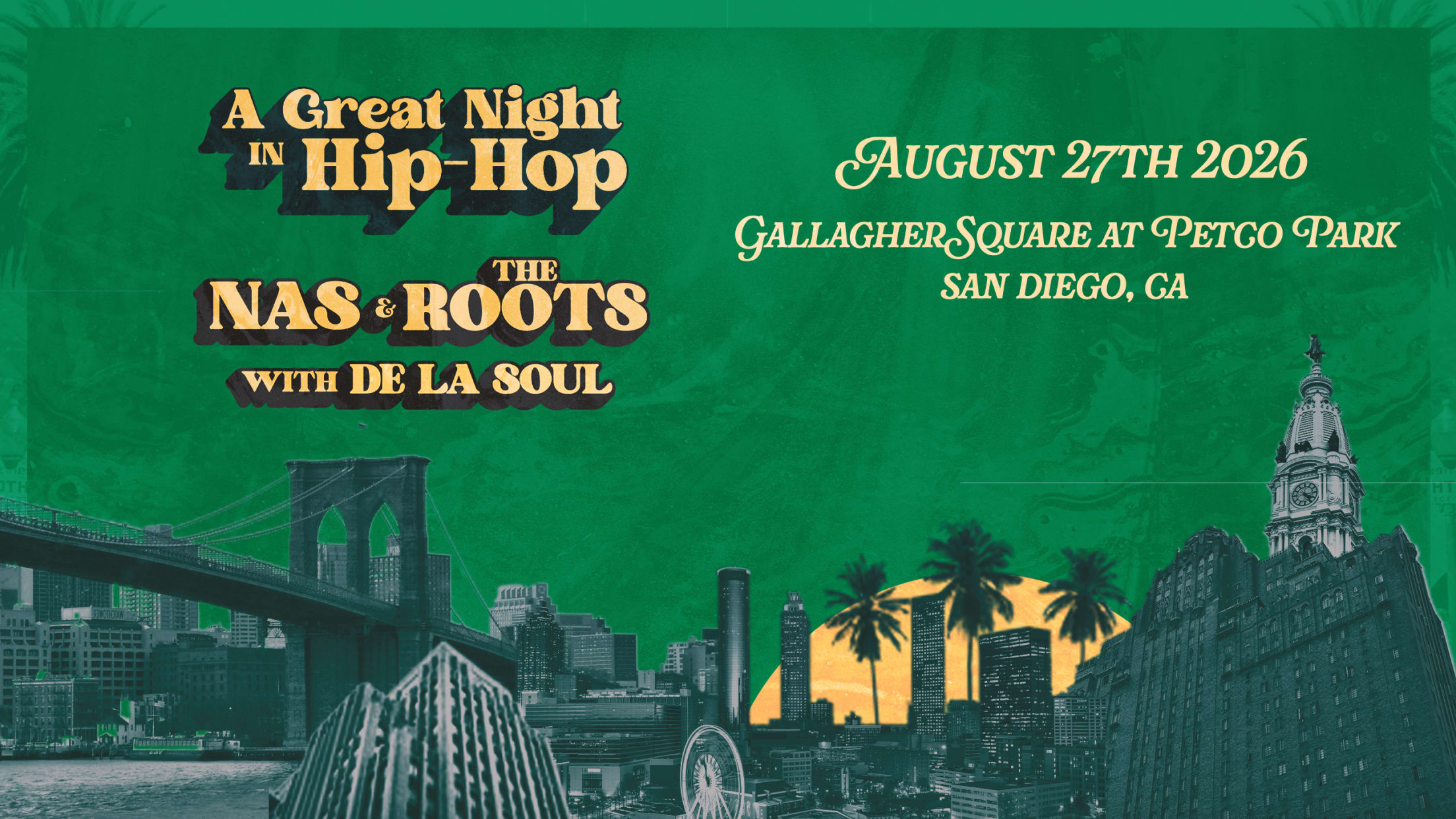 Nas & The Roots, with special guest De La Soul, are taking the stage in Gallagher Square at Petco Park on Thursday, August 27! Tickets will go on sale to the general public on Friday, March 6 at 10 AM PT.