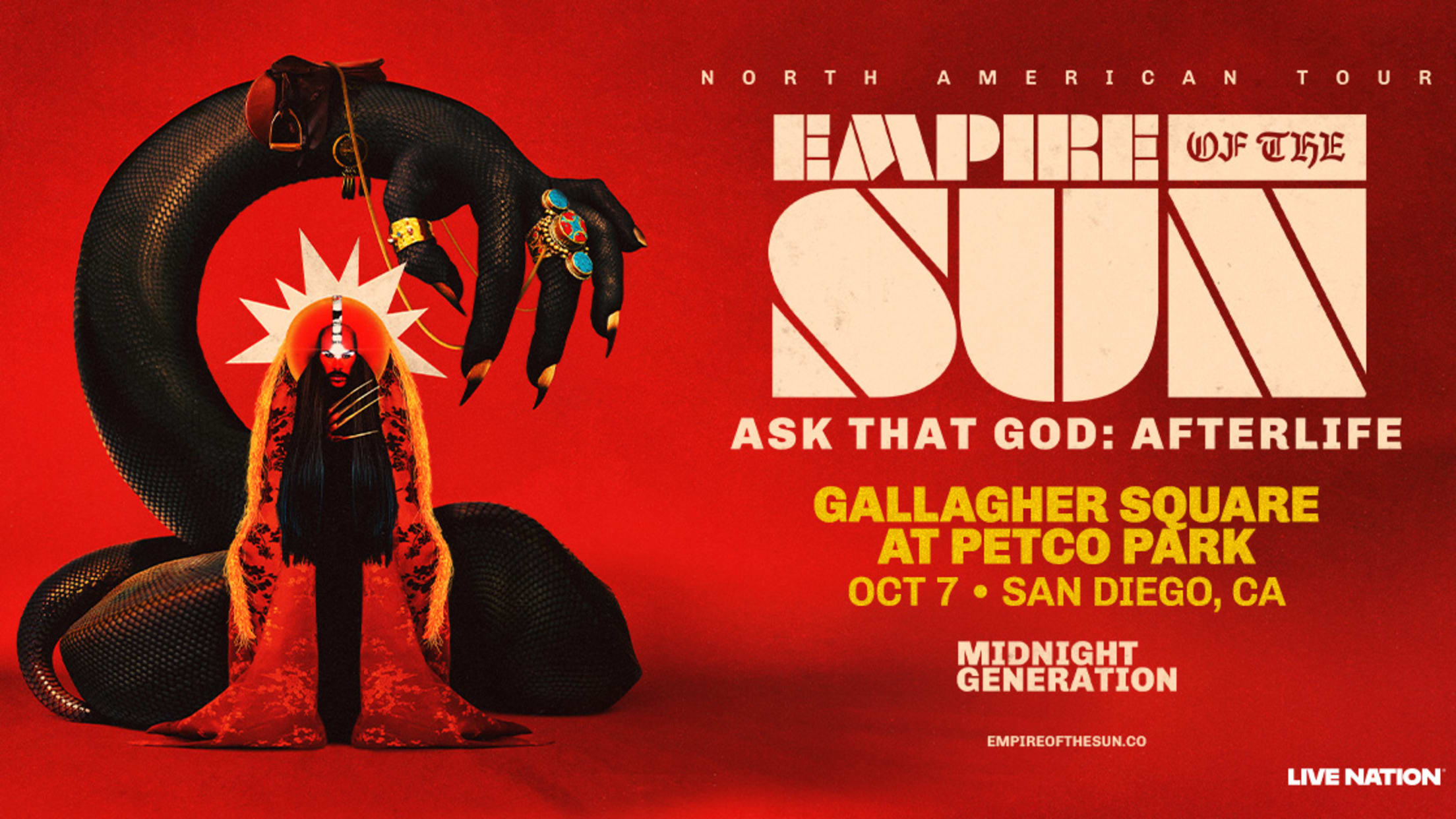 Empire of the Sun, with special guest Midnight Generation, will take the stage in Gallagher Square at Petco Park on Wednesday, October 7! Tickets go on sale to the general public on Friday, March 20 at 10 AM PT.