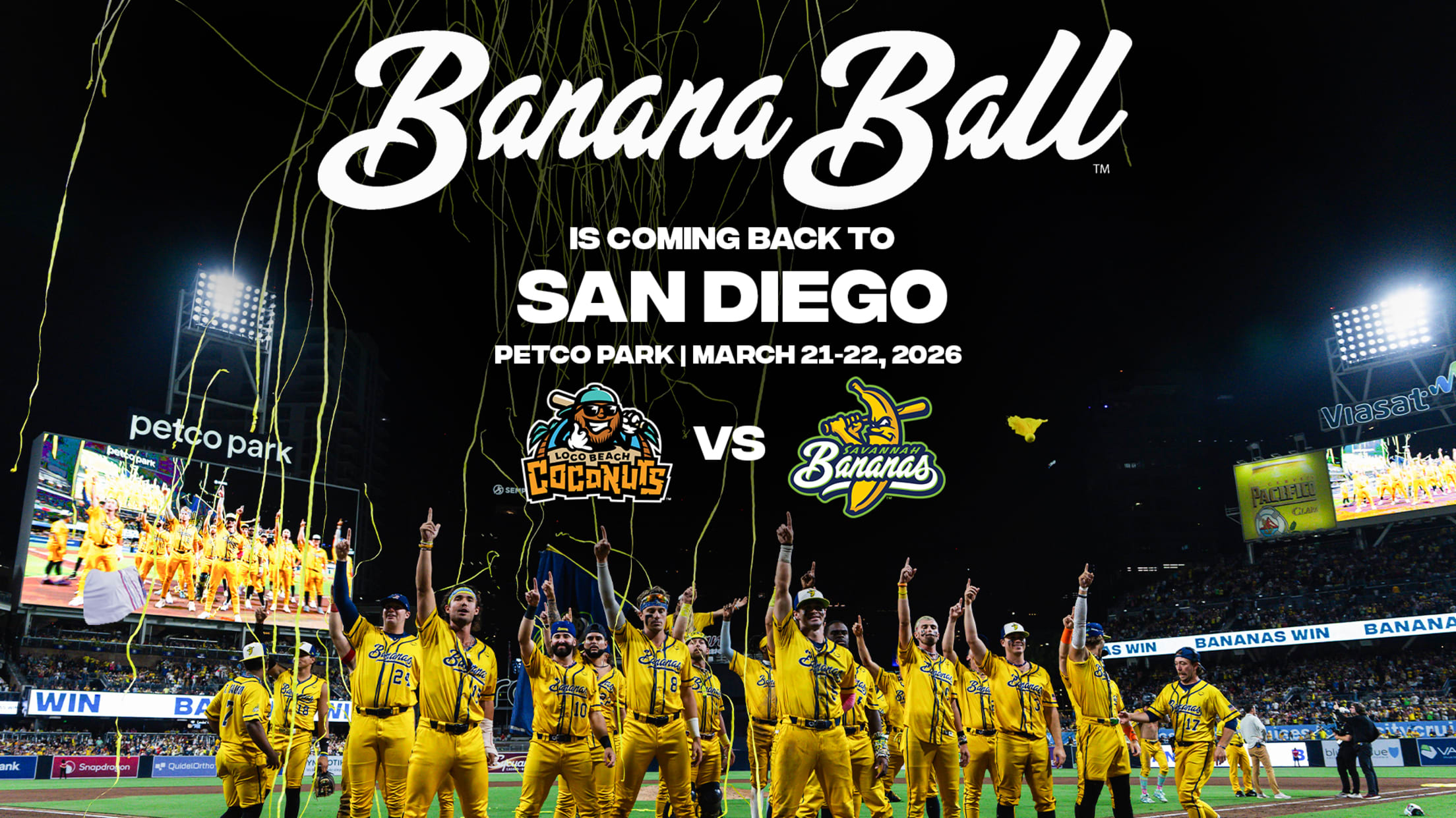 The Savannah Bananas are returning to Petco Park March 21 and 22, 2026! Don’t miss your chance to see Banana Ball live!