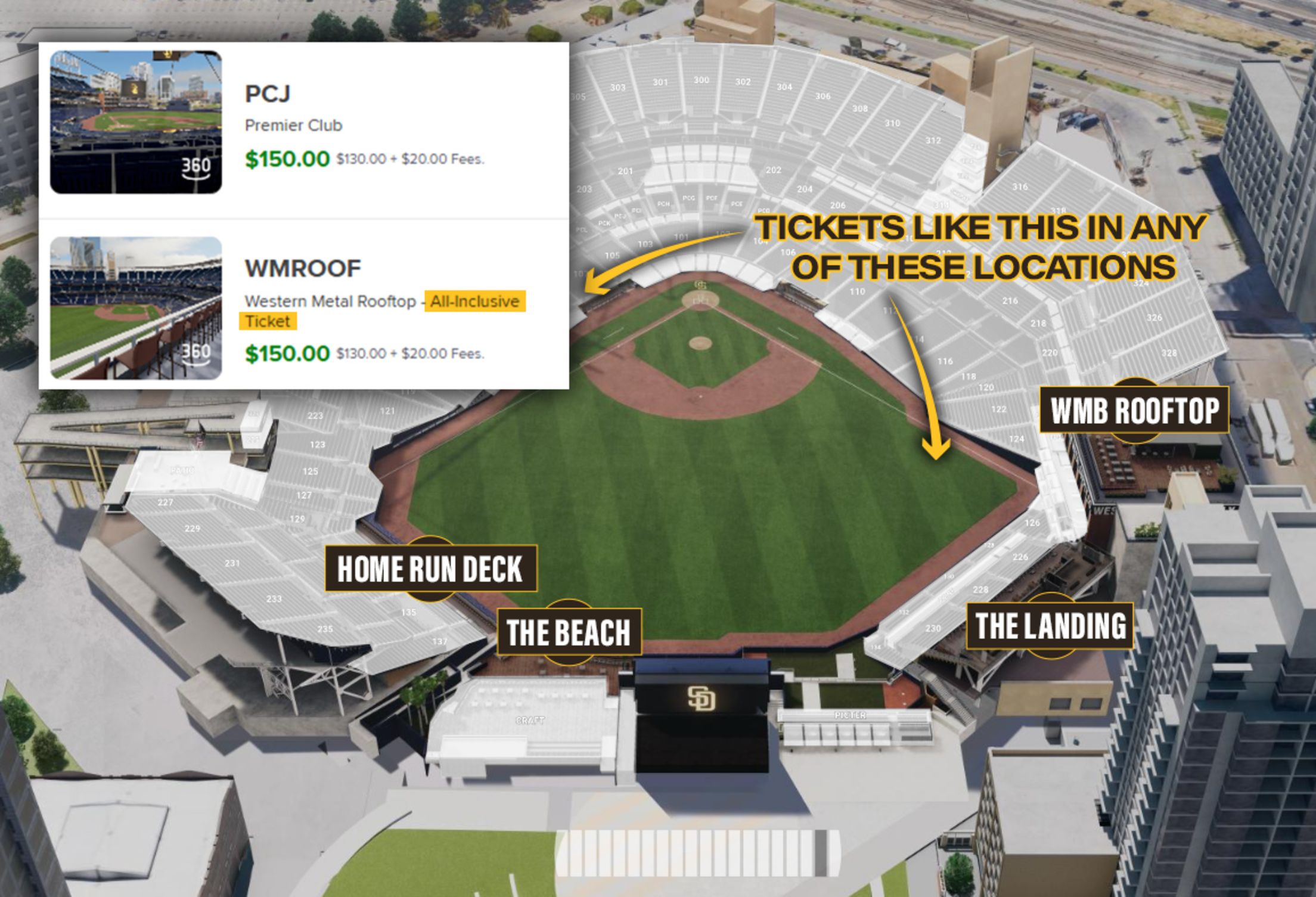These areas are standing room only, designed for guests to mix, mingle, and enjoy the game together. Limited seating is available on a first-come, first-served basis and is not available for all guests.