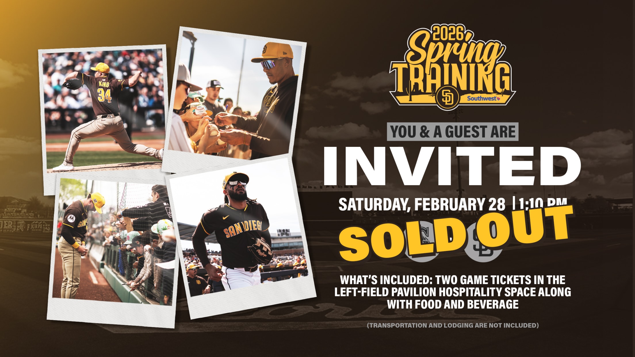 We are excited for baseball to be back and are looking forward to 2026 Padres Spring Training, presented by Southwest Airlines! As a valued Padres Member, you and a guest are invited to join us in Peoria for one of our upcoming Spring Training games at the Peoria Sports Complex: