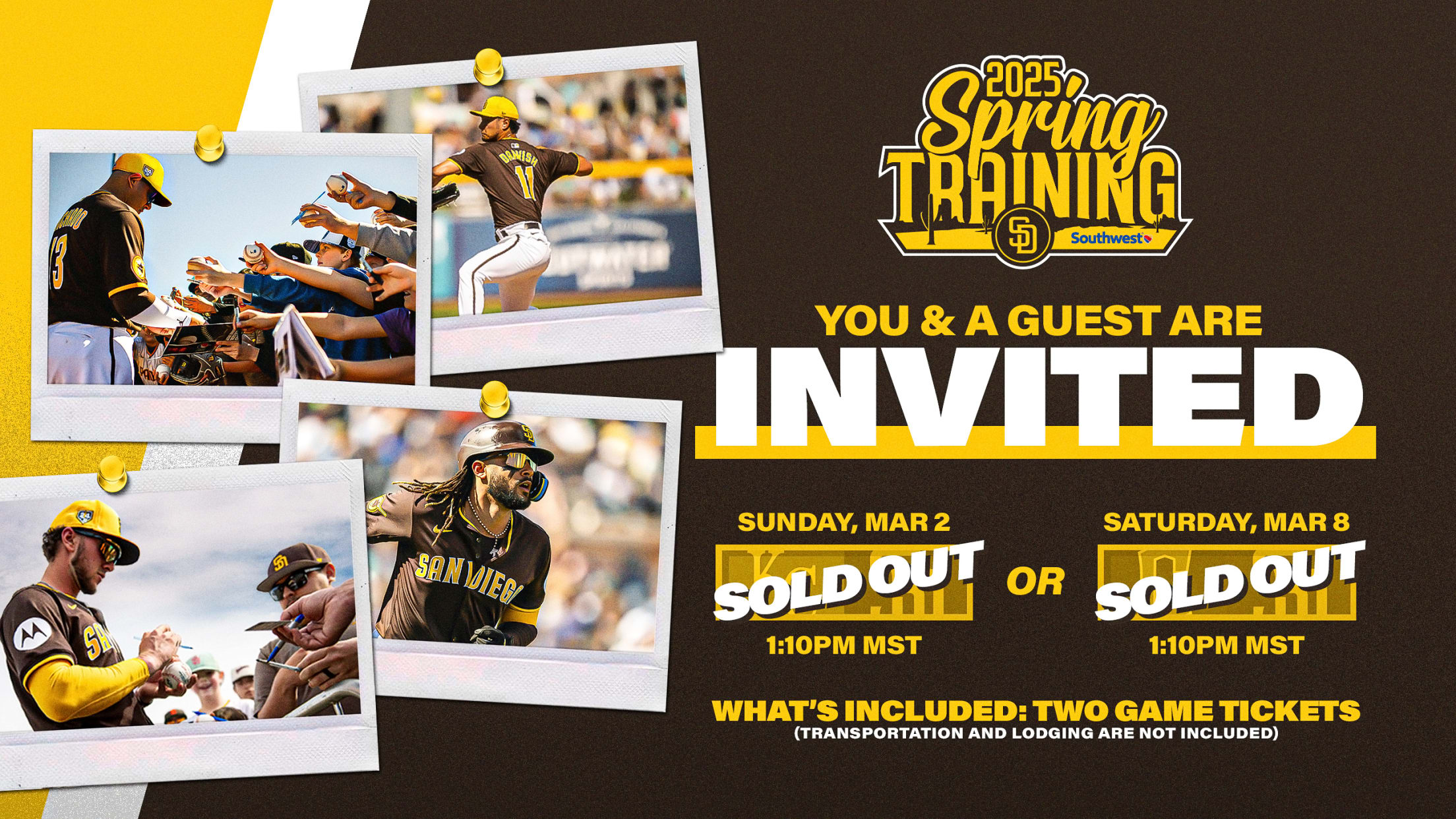 Baseball is almost back and Spring Training is around the corner! As a valued Padres Member, you and a guest are invited to join us in Peoria for one of two upcoming Spring Training games: