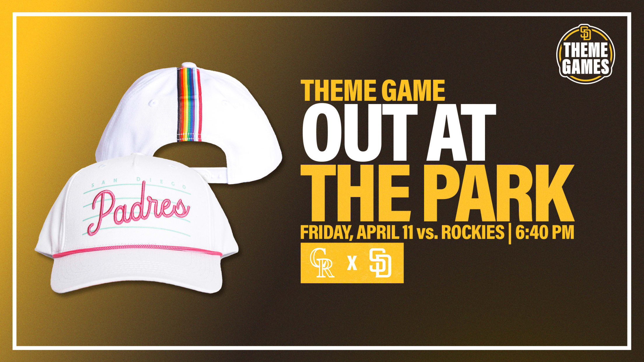 In community partnership with San Diego Pride, join the Padres in celebrating Out at the Park at Petco Park. Grab your friends, family, and rainbows and come together with the San Diego LGBTQ+ community for a night of fun and festivities. The Padres host the Rockies on Friday, April 11 at 6:40 PM. Your ticket purchase includes a ticket to the game, a commemorative Out at the Park Padres hat, and a $10 donation to San Diego Pride or the sports league of your choice!