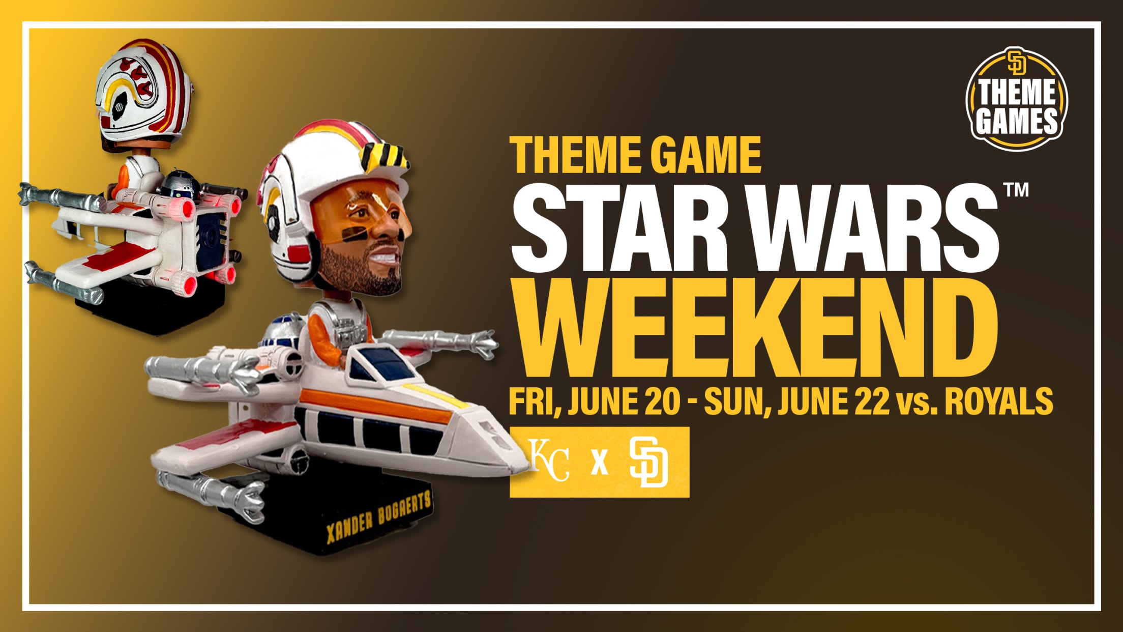 Star Wars™ fans, this weekend is for you! The battle begins June 20-22 as the Padres host the Kansas City Royals. Purchase a Theme Game package to receive a ticket to the June 20-22 game of your choosing and an exclusive themed bobblehead. A Theme Game package is required to receive this bobblehead (available only while supplies last).