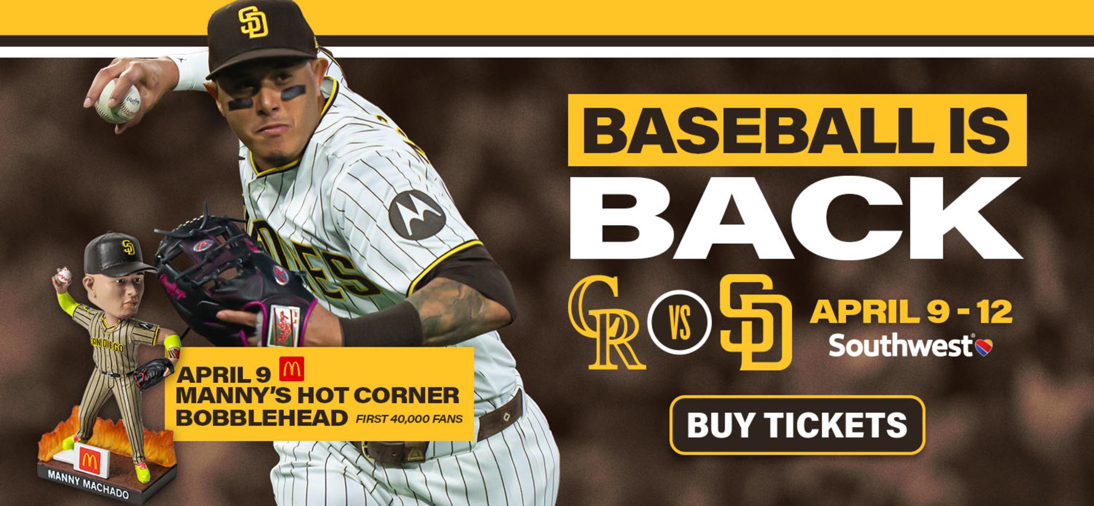 There’s something for everyone at America’s #1 Ballpark! Be there for can’t-miss matchups, incredible giveaways and promotions, delicious local cuisine and craft beers, and the Padres star-studded roster! Secure your tickets today!