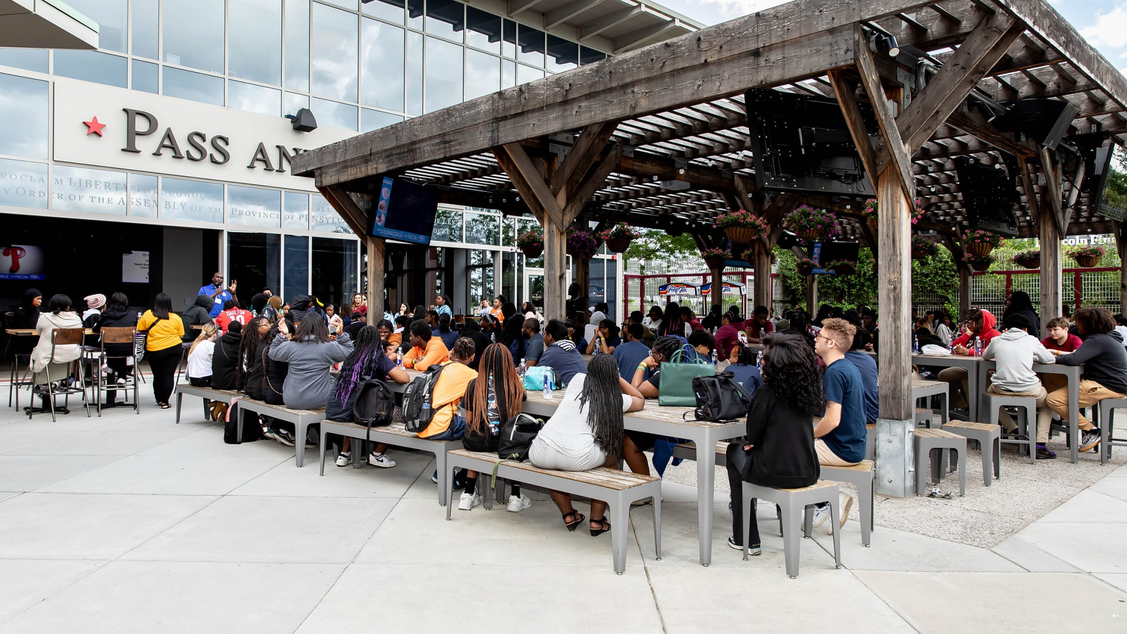 Additional features include Ultra High Definition TV's throughout, fire pits, picnic tables, a 30' x 50' pergola with festoon lighting and a Phillies-etched water feature. Together the area can accommodate 500 guests comfortably and if the whole plaza is used, can accommodate approximately 1,000.