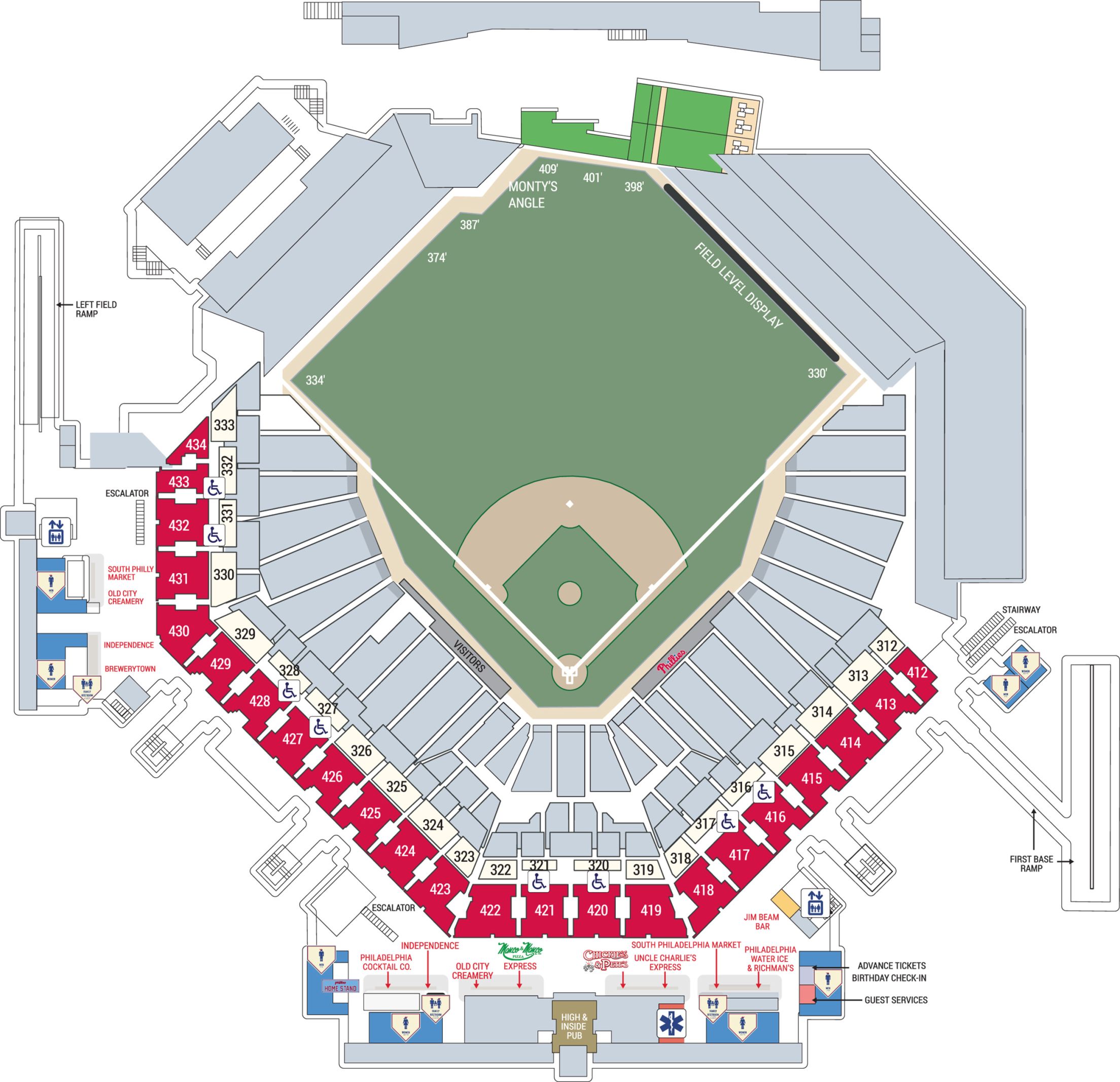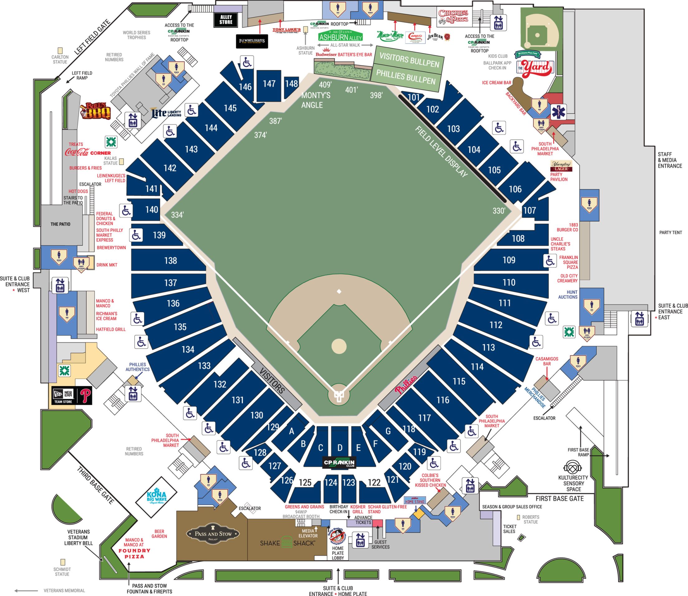 All concession areas are wheelchair accessible. The concessionaire is a joint venture involving Aramark Sports + Entertainment, the Phillies and GM Concessions.