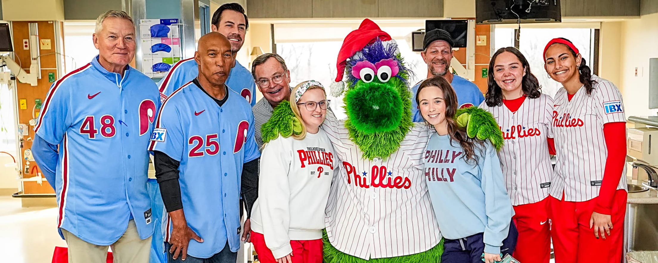 Phillies alumni, the Phillies Ballgirls and Phanta Claus visited Nemours Children's Hospital to deliver some gift donations and holiday cheer.