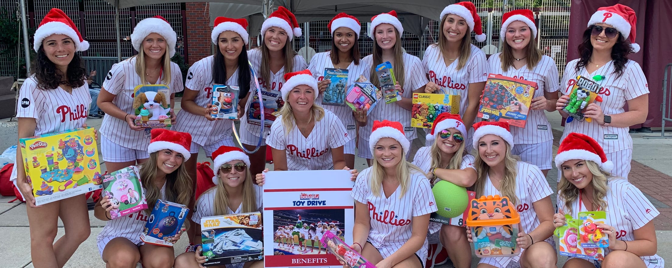 Each year, the Ballgirls host a Toy Drive in accordance with the Phillies celebration of Christmas in July. We encourage every fan to bring a new and unwrapped toy to whatever gate they choose. Our collection begins when gates open and ends at the conclusion of the 3rd inning. All of the toys collected will be distributed to local children during the holidays!