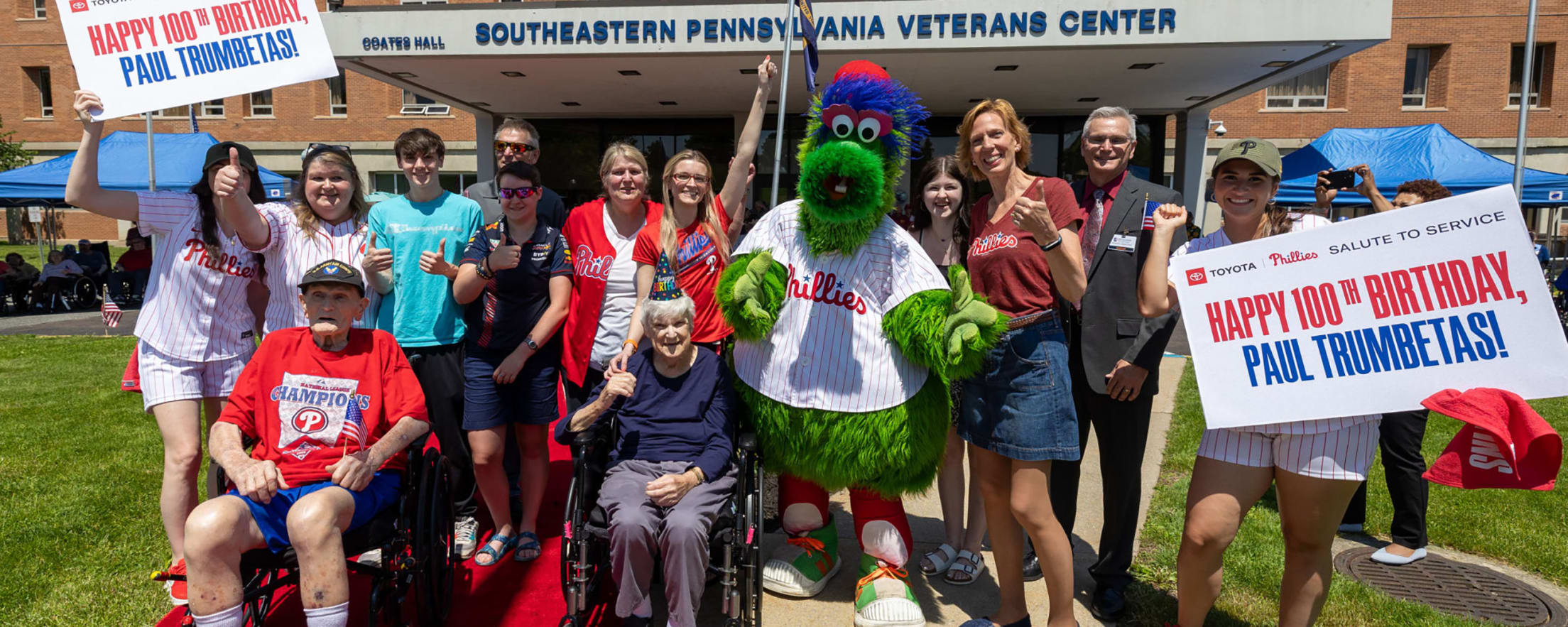Ahead of the Sept. 11 game, the beloved Tugger the service pup joined others for a visit to the Delaware Valley Veteran's Home to celebrate and honor local vets.