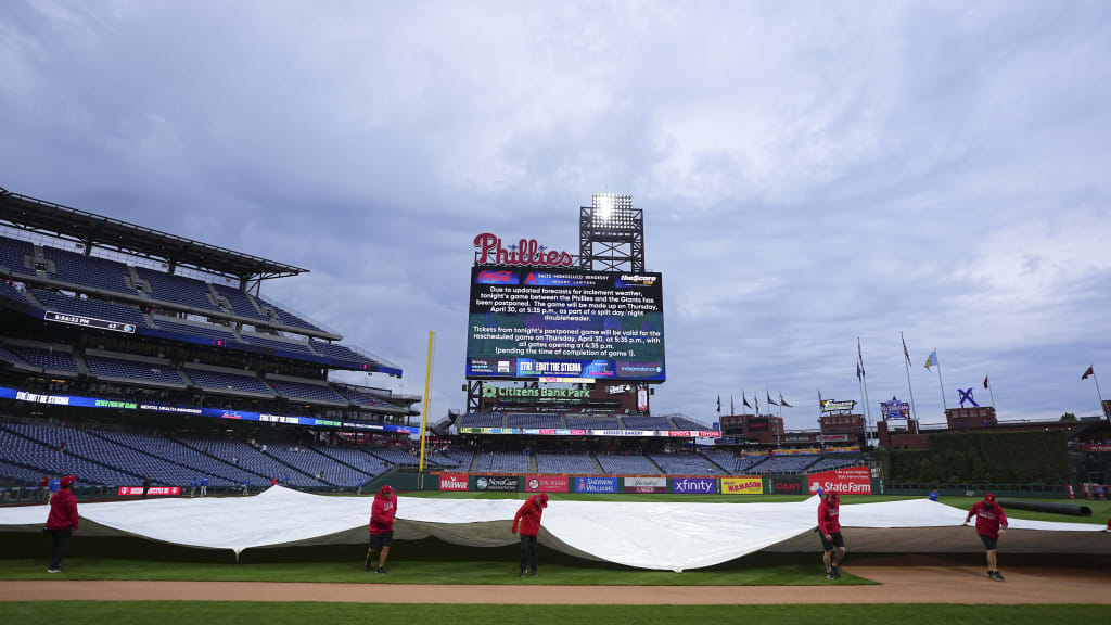 With steady rain forecasted to fall throughout the evening, Wednesday’s matchup was postponed and rescheduled as part of a split doubleheader Thursday at Citizens Bank Park.