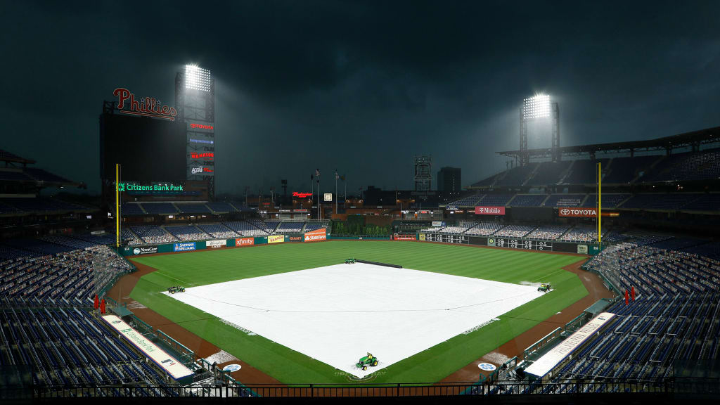 They postponed Friday night's series opener against the Braves at Citizens Bank Park because of rain. The teams will make up the game Sunday with a seven-inning doubleheader. Game 1 will begin at 1:05 p.m. ET, and Game 2 will begin 40 minutes after the completion of Game 1. It is the Phillies' ninth postponement of the season.
