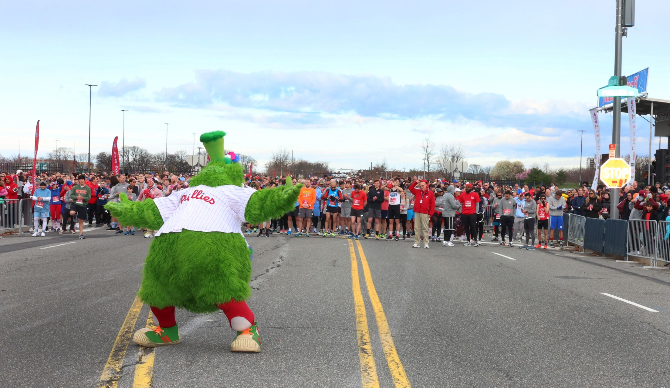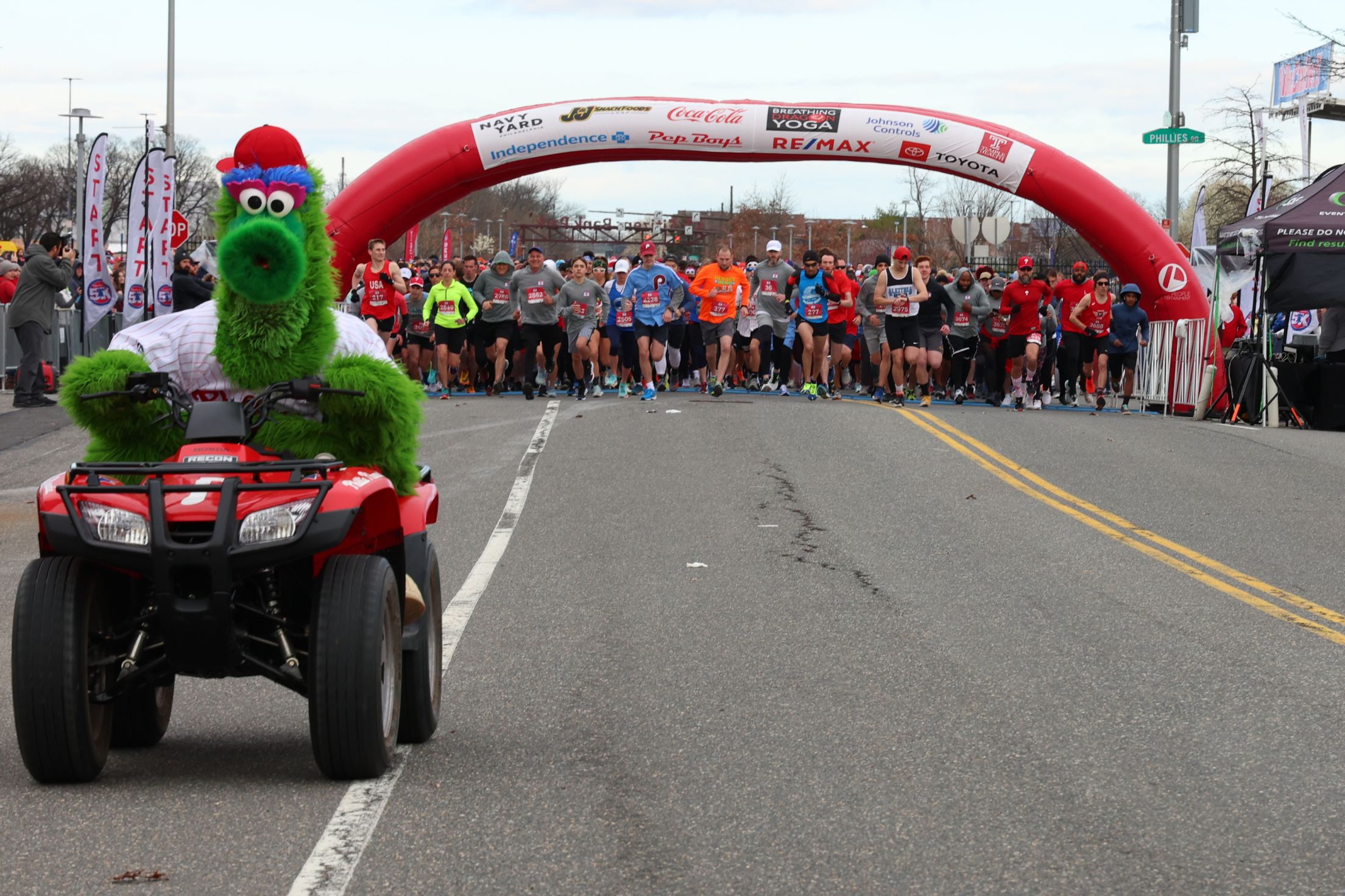 After two years, the Phillies preseason, racing tradition was back in person at the ballpark during the 12th annual Phillies Charities 5K on Saturday, March 26. The Phillie Phanatic revved up the crowd and led the way for thousands ofrunners who sprinted around Citizens Bank Park and the Navy Yard. Surprise guests along the route included Phoebe Phanatic and alumni including Mickey Morandini, Milt Thompson and Tommy Greene. Announcer Dan Baker and the Phillies Ballgirls also participated.