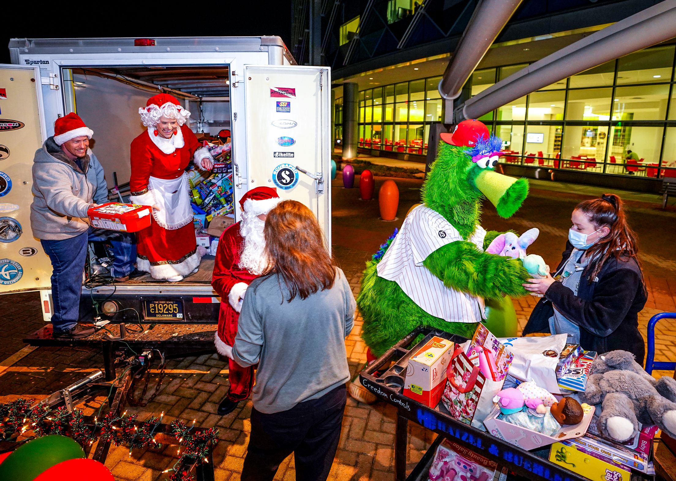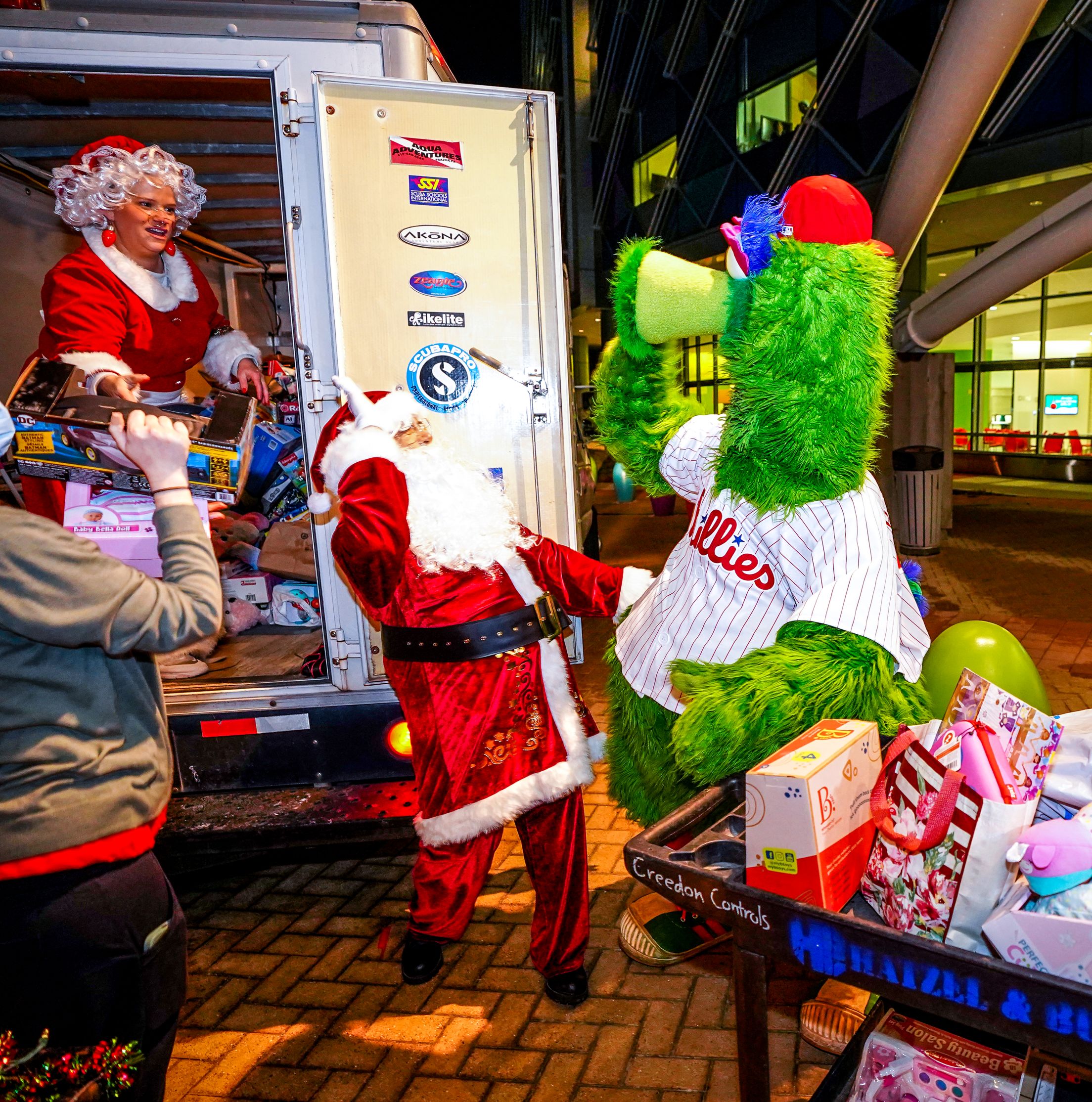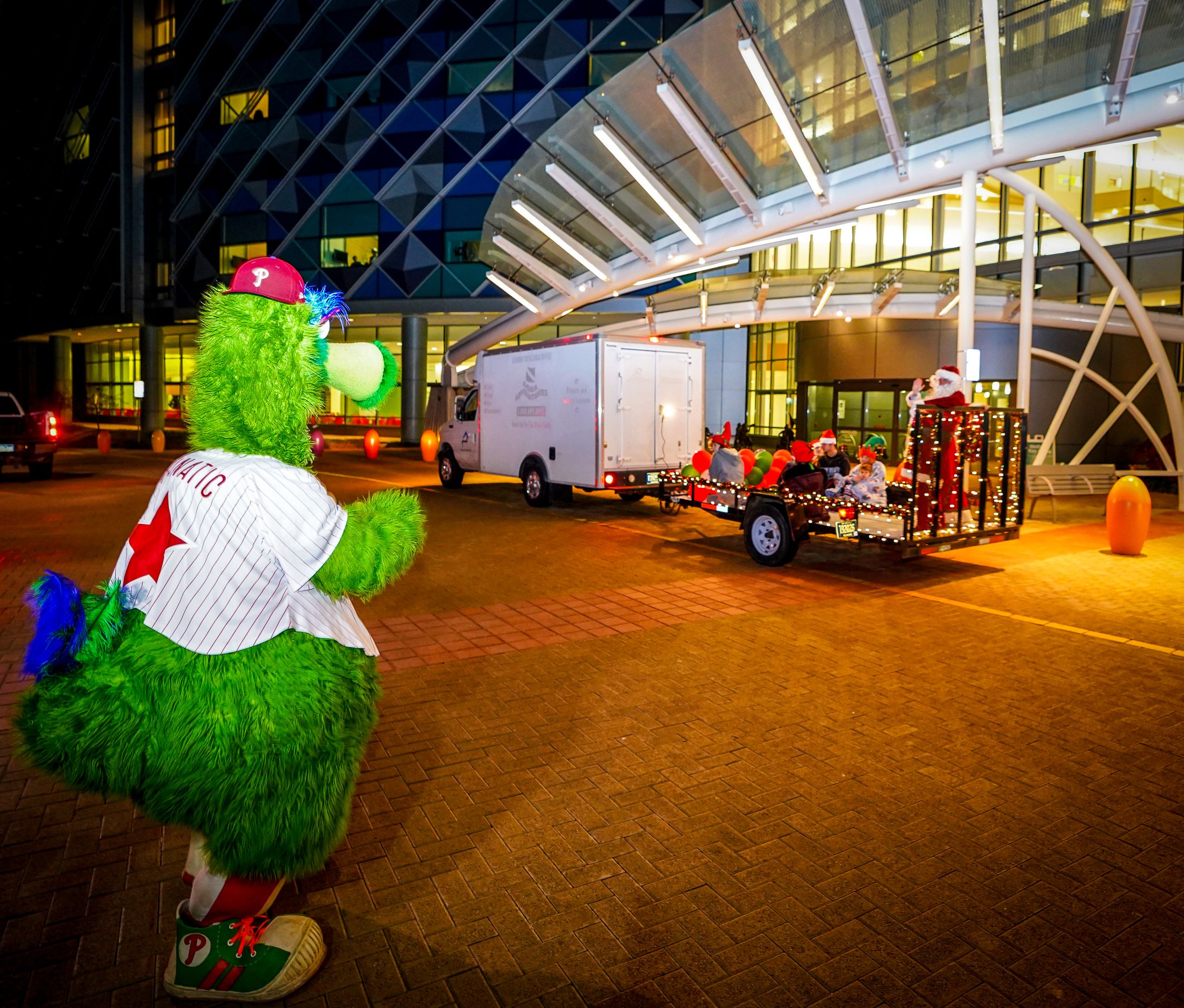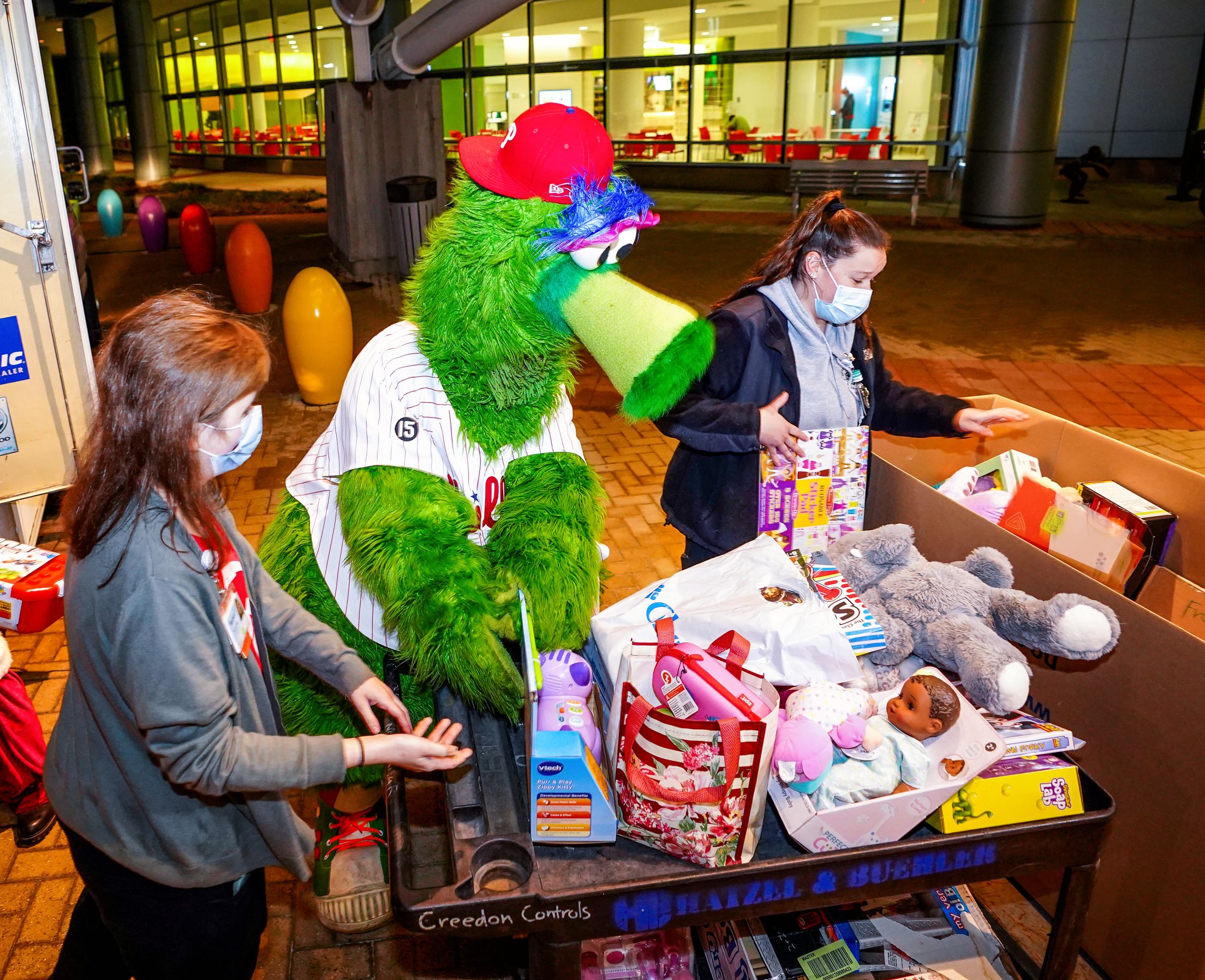 Nemours Children’s Hospital Get a Surprise Phillies Holiday Delivery at Phillie Phanatic Toy Drop-off