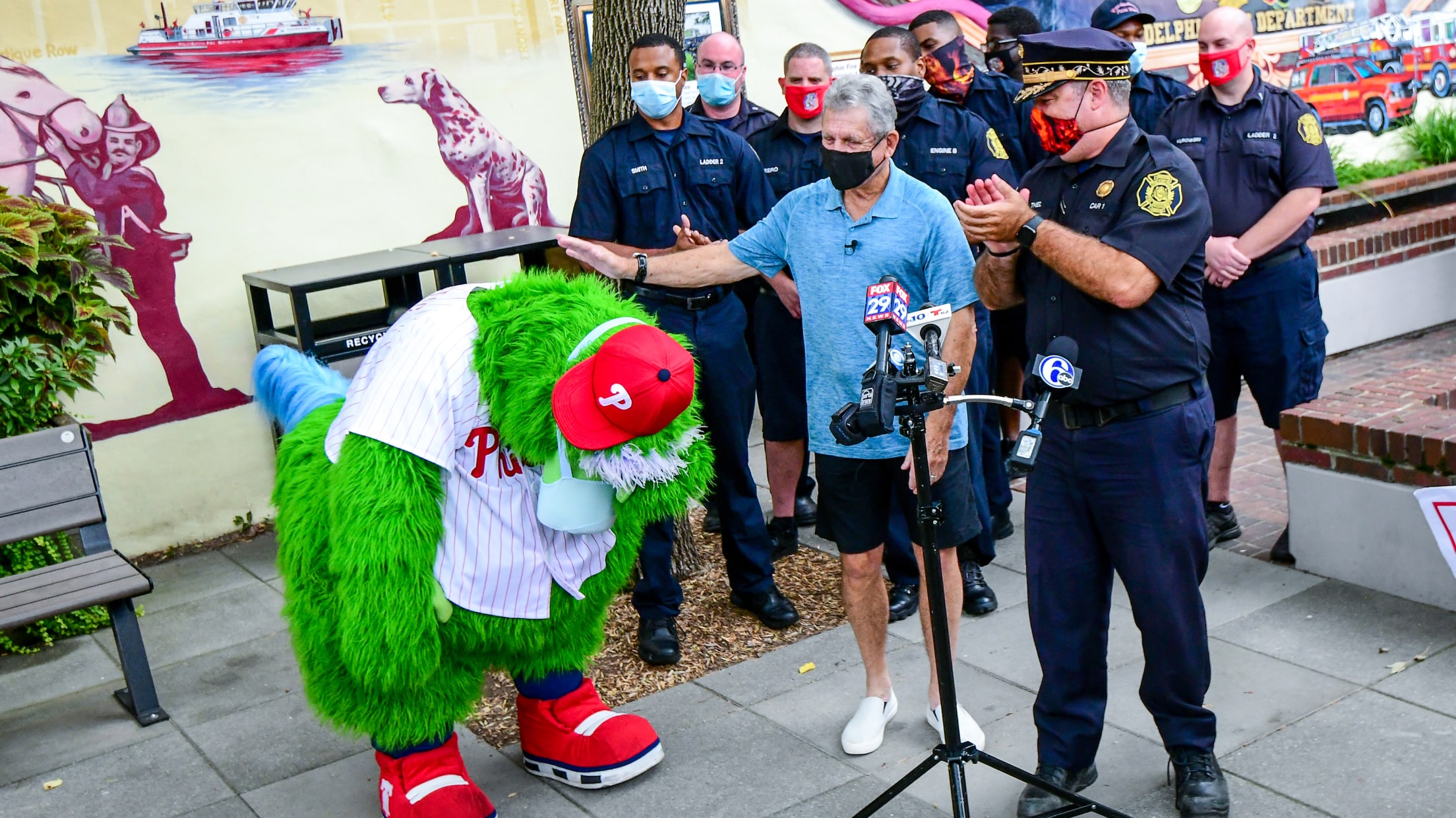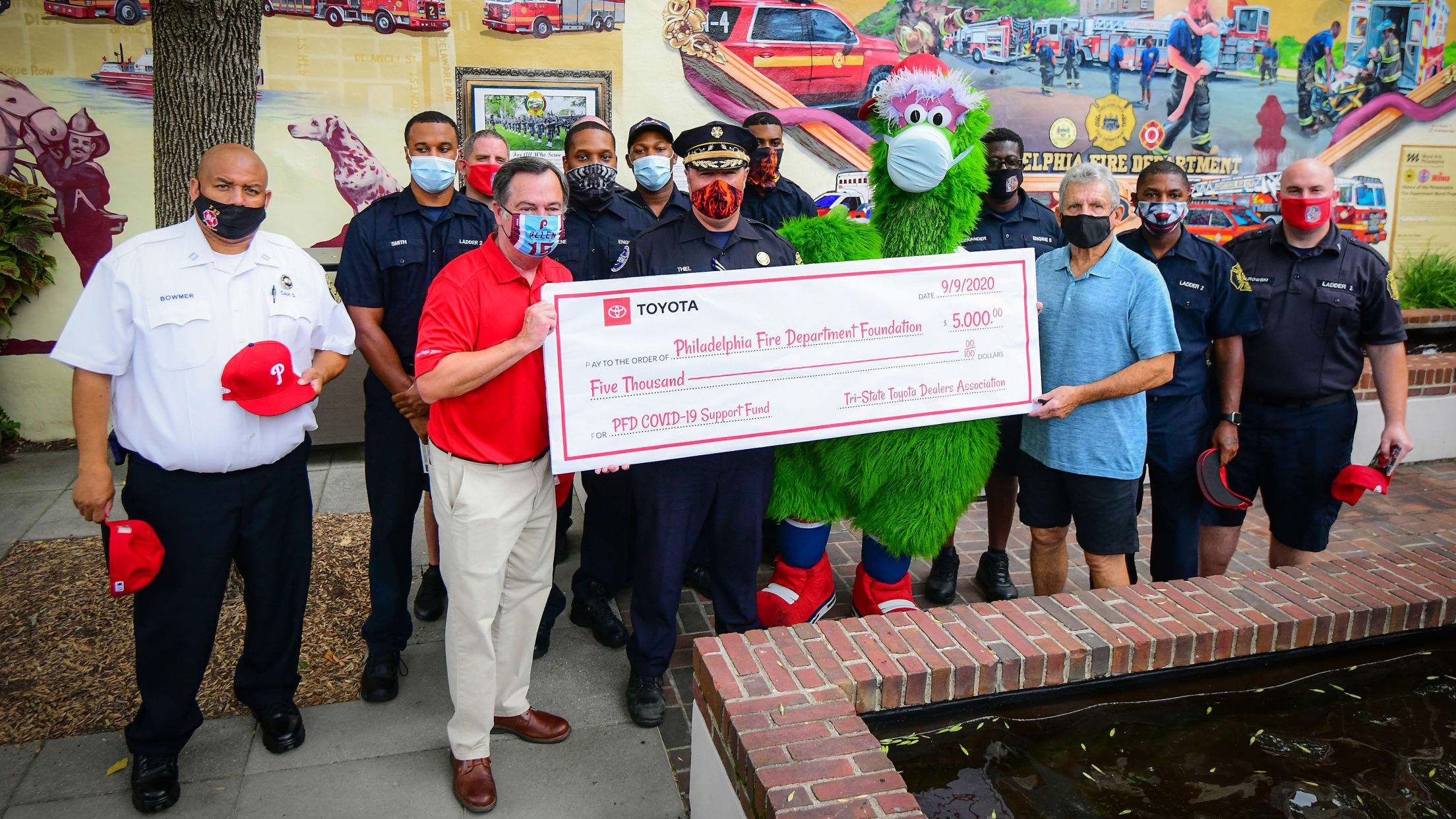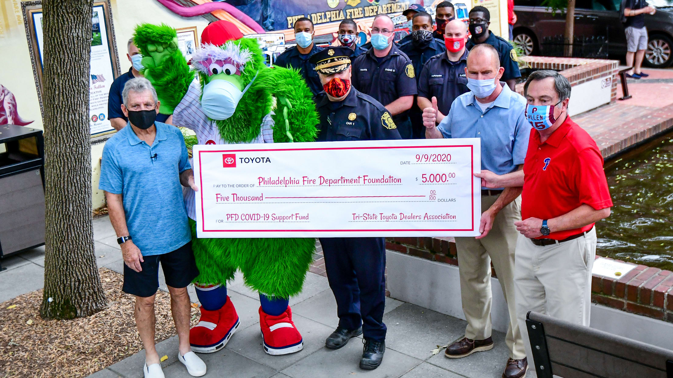 On Wednesday, September 9, the Phillies and Toyota stopped by the historic Old City Firehouse to thank firefighters for their bravery and service in advance of September 11th Remembrance Day. Miles Kennedy/Philadelphia Phillies