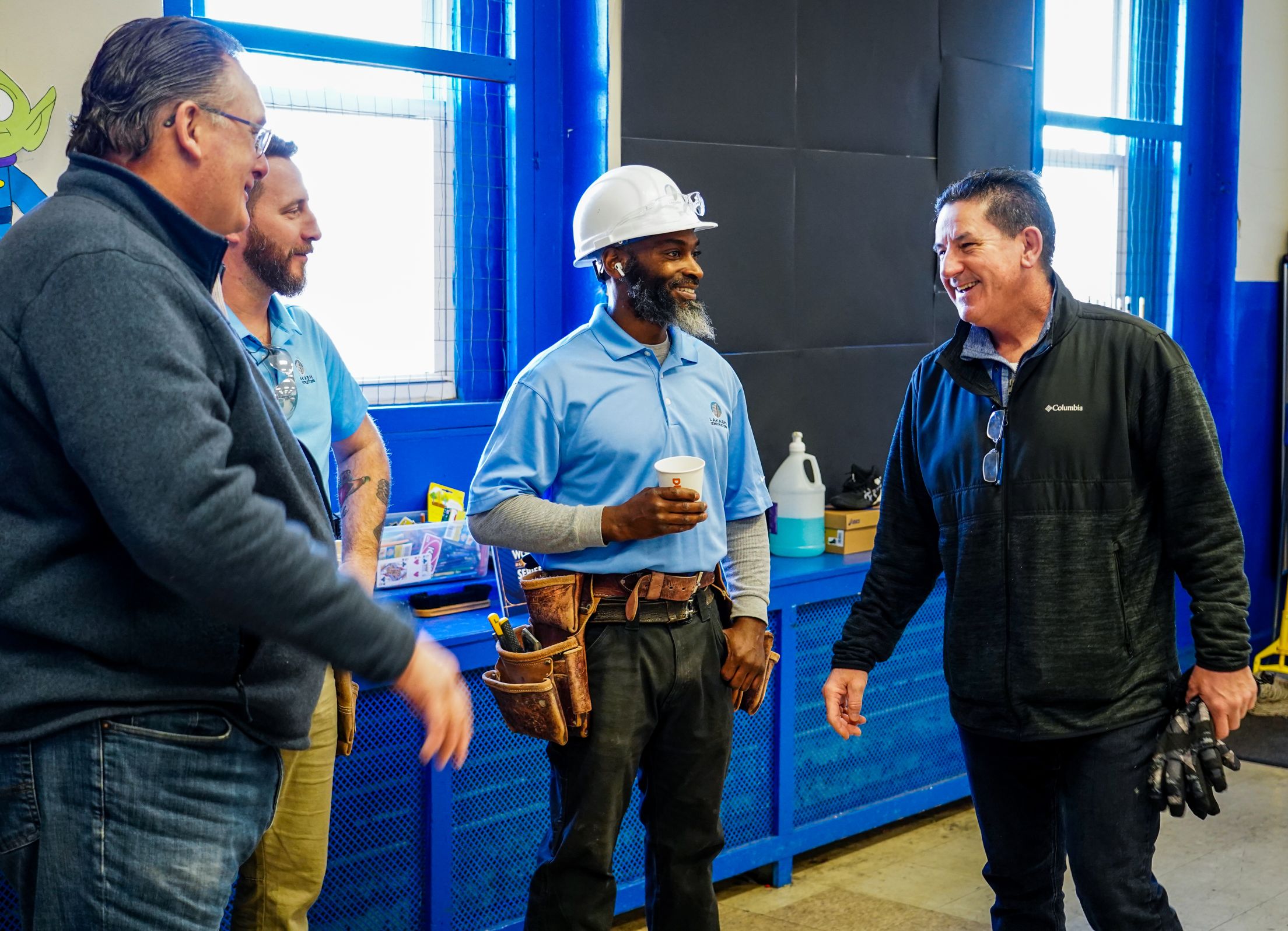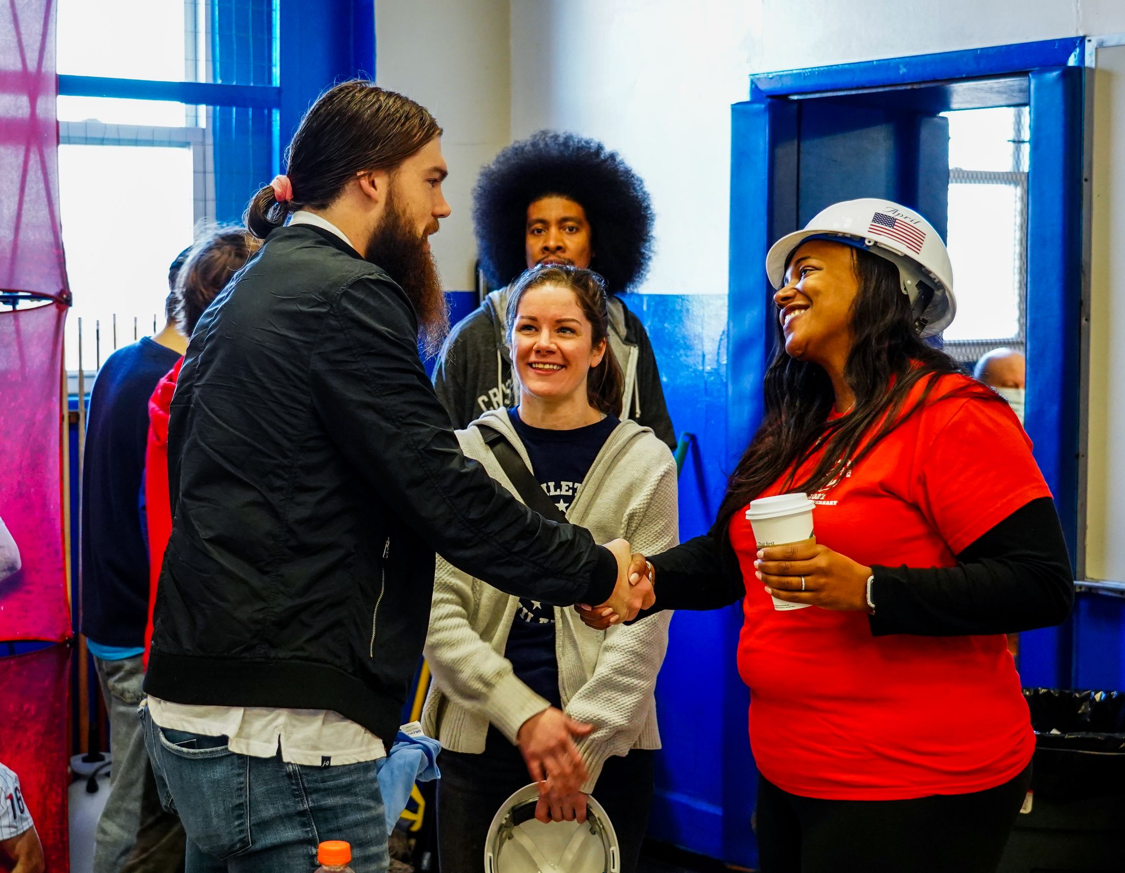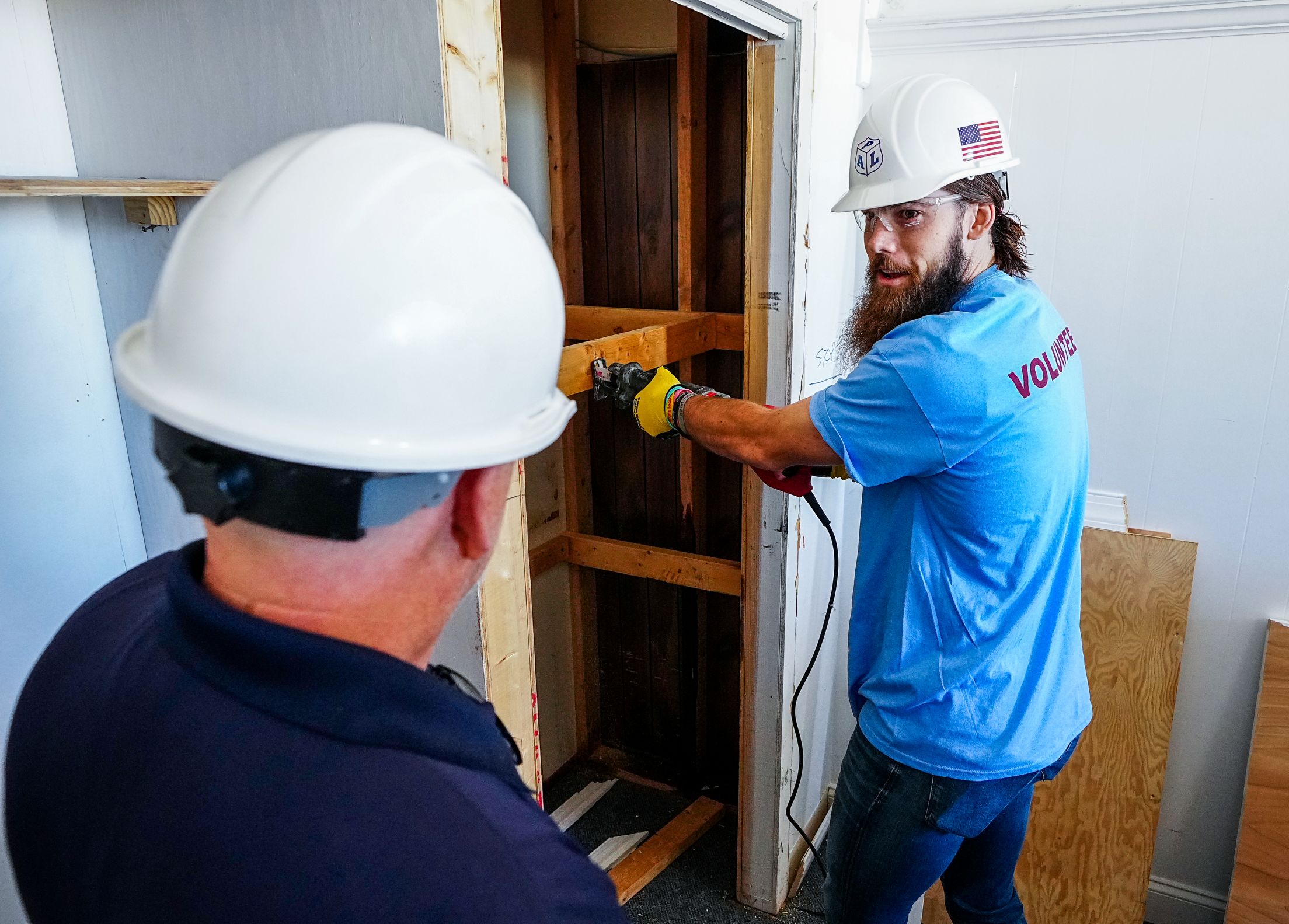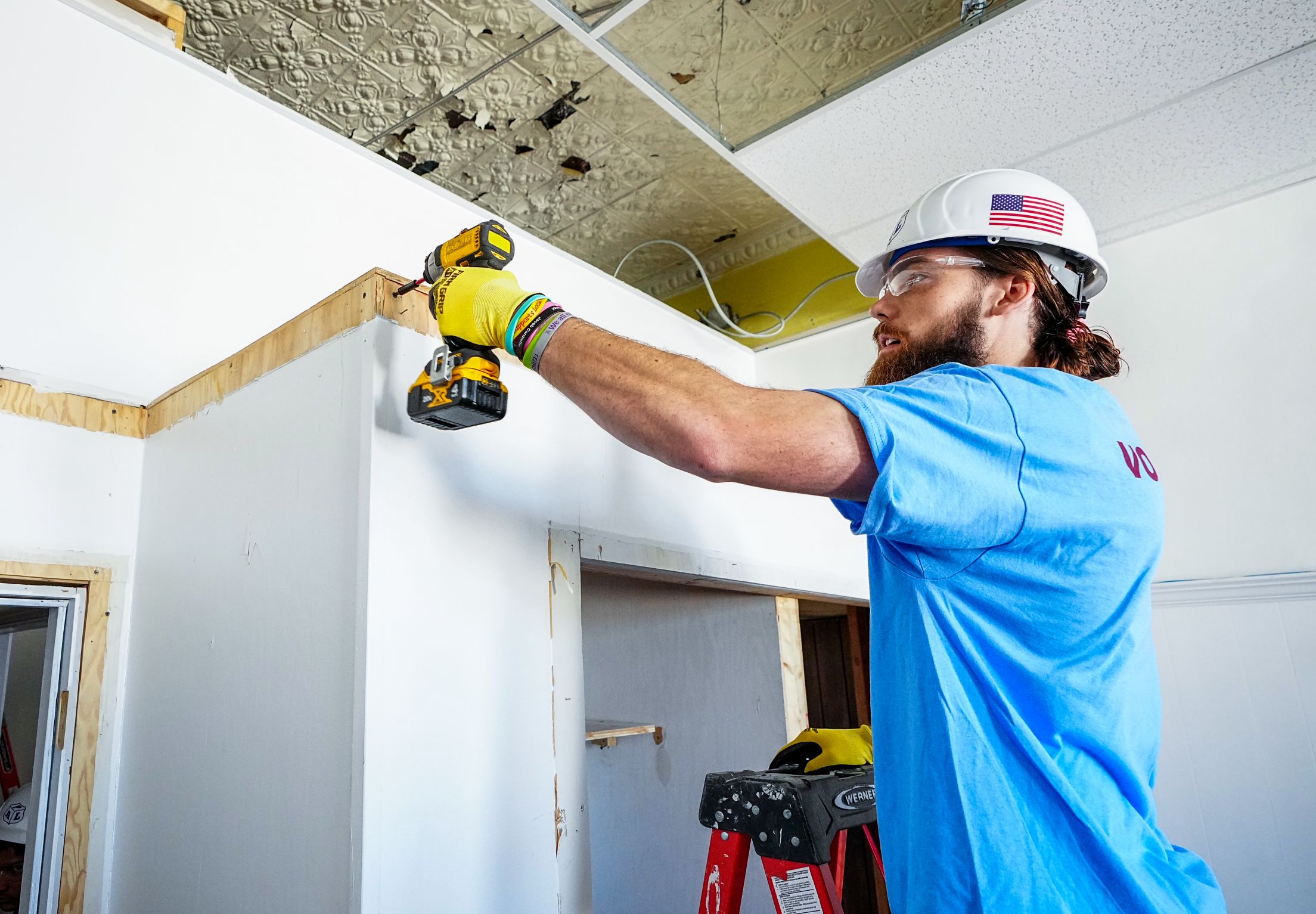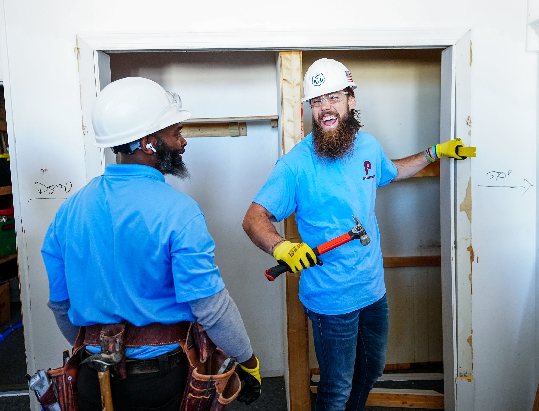 Phillies manager Rob Thomson and outfielderBrandon Marsh, along with volunteers from the Phillies front office, made a special visit to the 24th PAL Center as they joined PAL officers and kids to assist with the removal of walls, floor tile and light debris, as they help to make way for a new e-gaming room to be built this winter, created through the MLB Fall Classic Legacy Initiative.