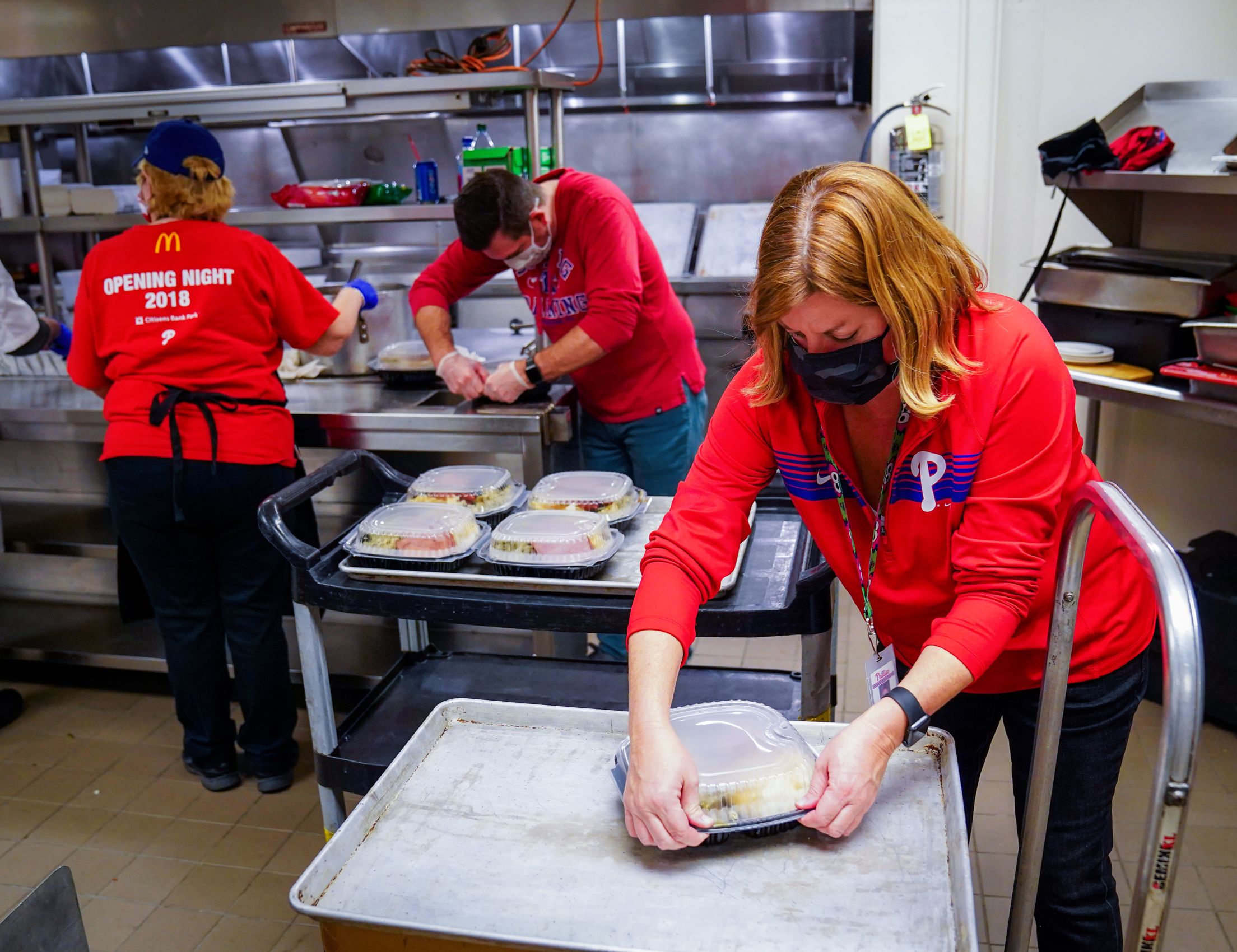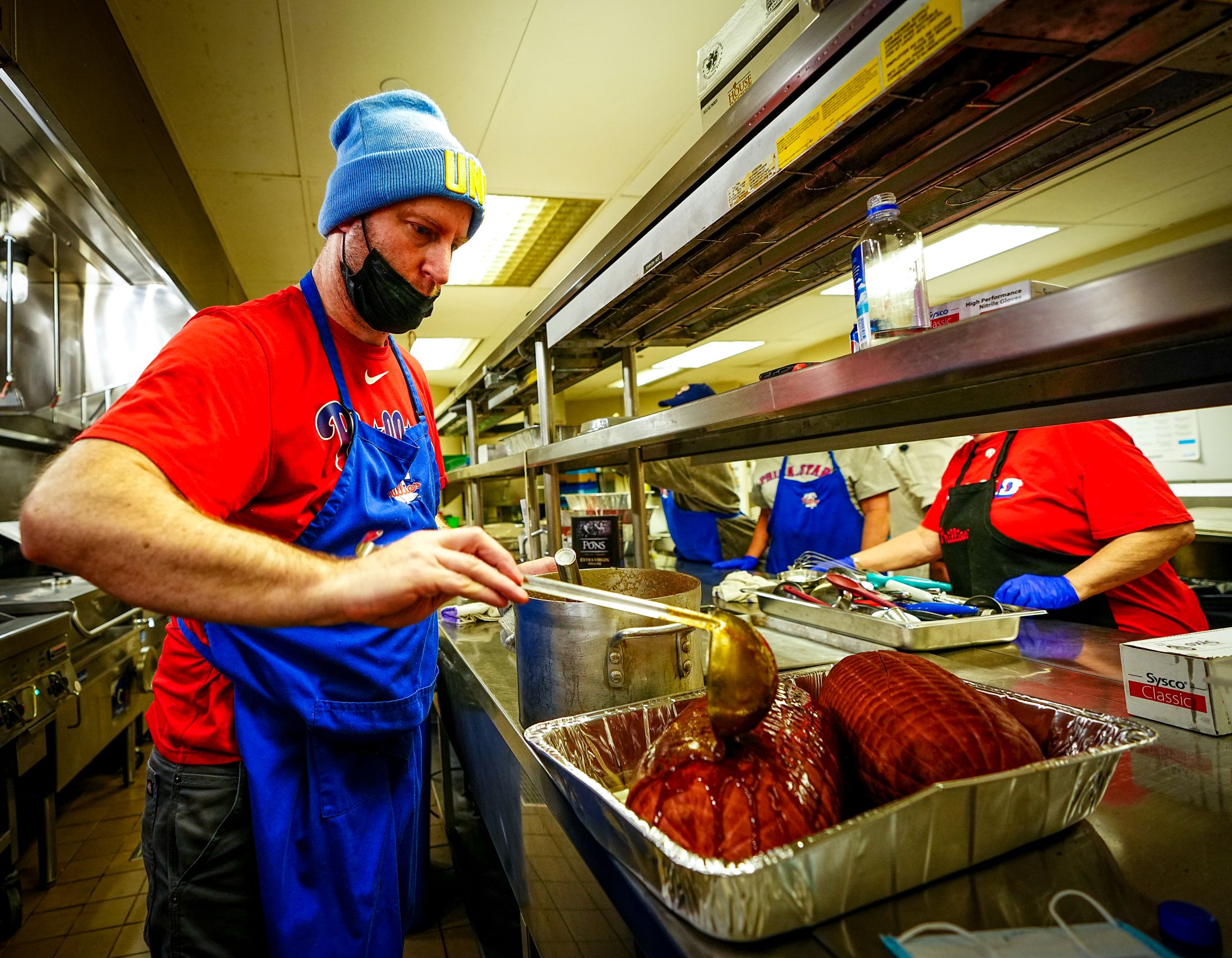 A Phillies holiday tradition of 22 years continues in support of one of the largest homeless shelters in Philadelphia. On Tuesday, Dec. 14, the Phillies family was busy prepping food and preparing holiday dinners at Citizens Bank Park, which will all be delivered to Bethesda Project’s Our Brother’s Place and later served to the more than 125 guests currently living at their shelter.