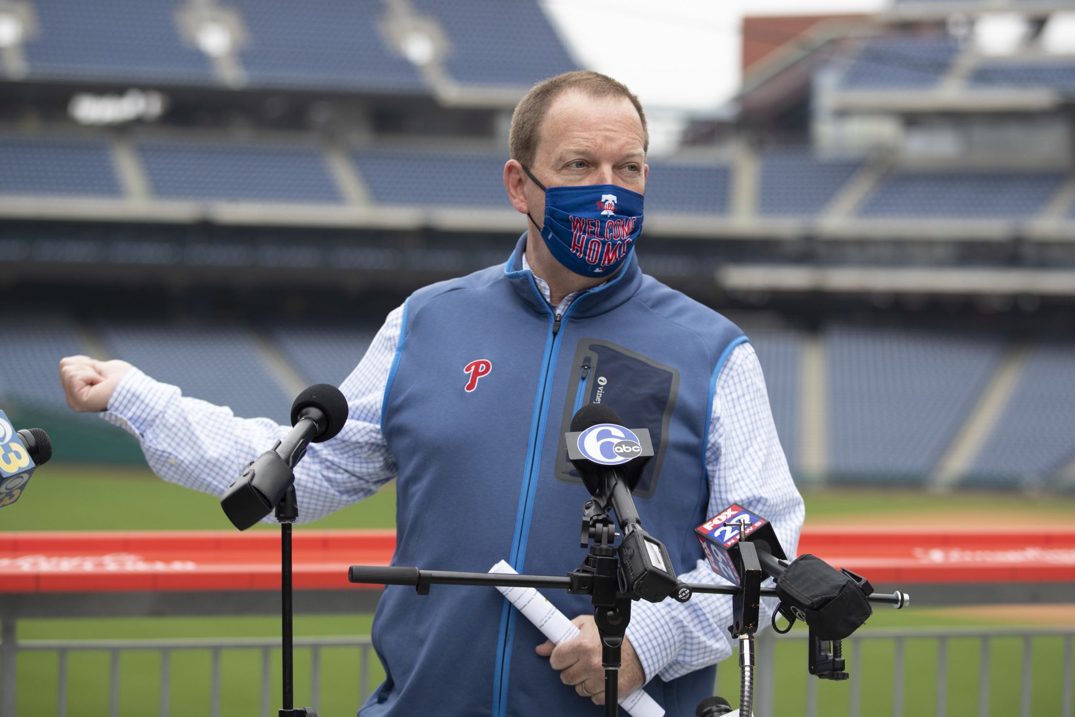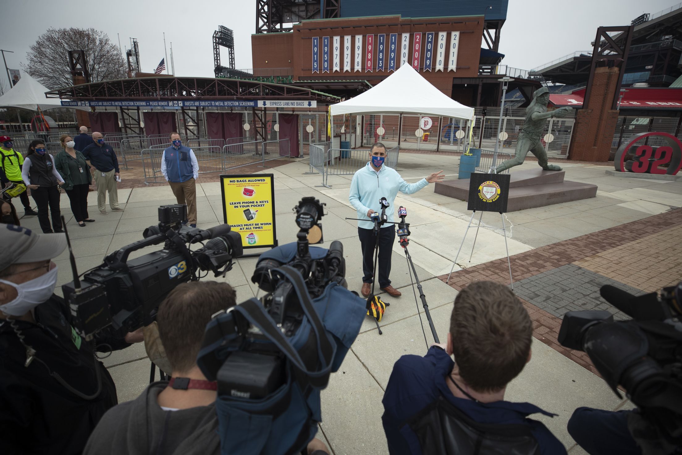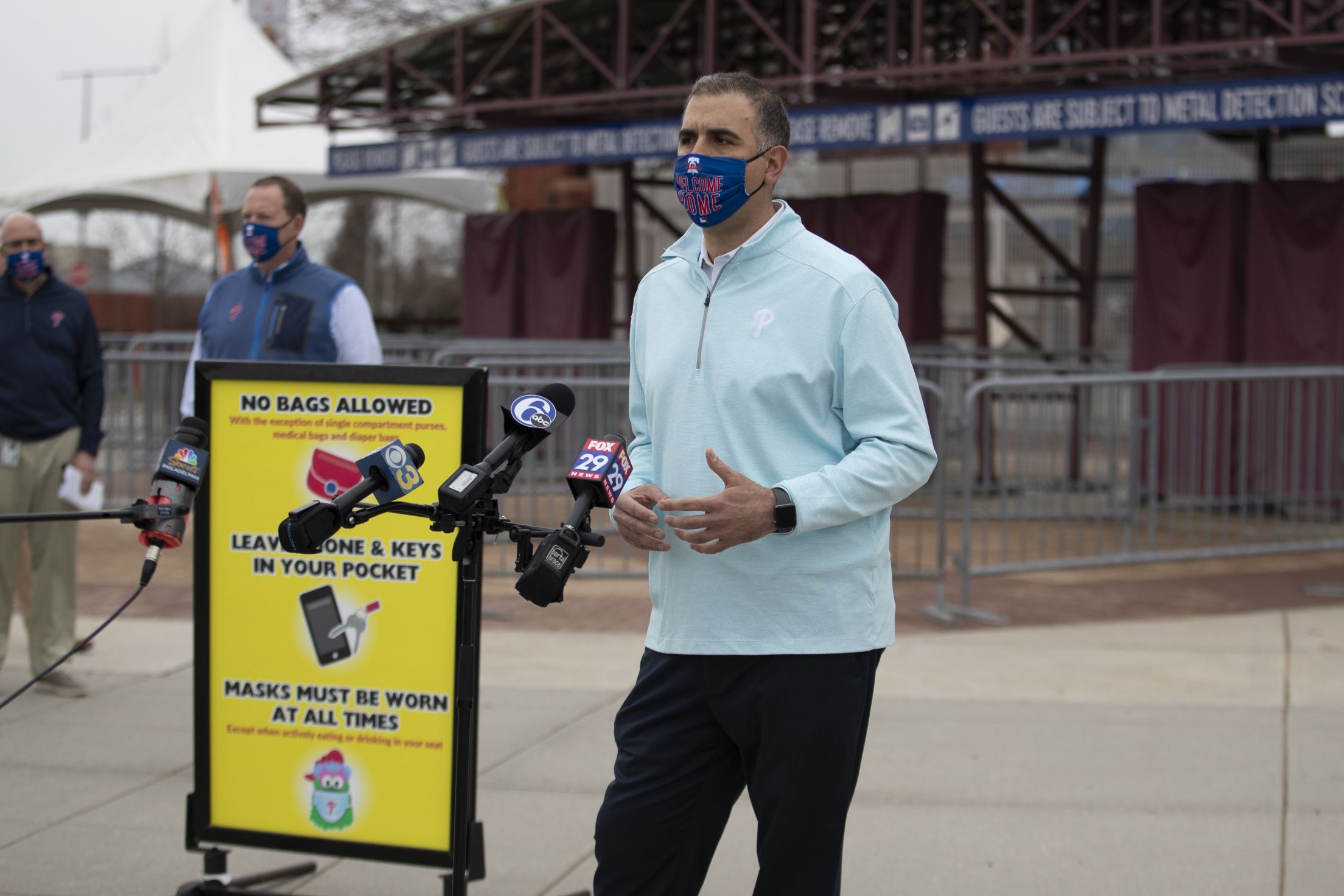 With one week until Opening Day, the Phillies announced their new safety guidelines for the 2021 season during a “Welcome Home” media preview. Officials taking part included Phillies Executive Vice President David Buck, Phillies Director of Operations/Security Sal DeAngelis, General Manager at Spectra at Citizens Bank Park Carolyn DiGiuseppe, General Manager at Aramark at Citizens Bank Park Kevin Tedesco and Senior Vice President, Ticket Operations & Projects John Weber.