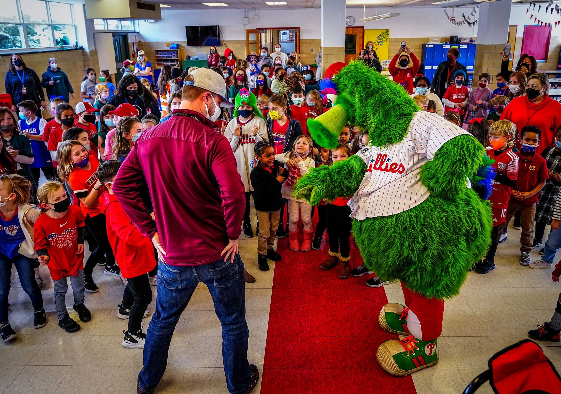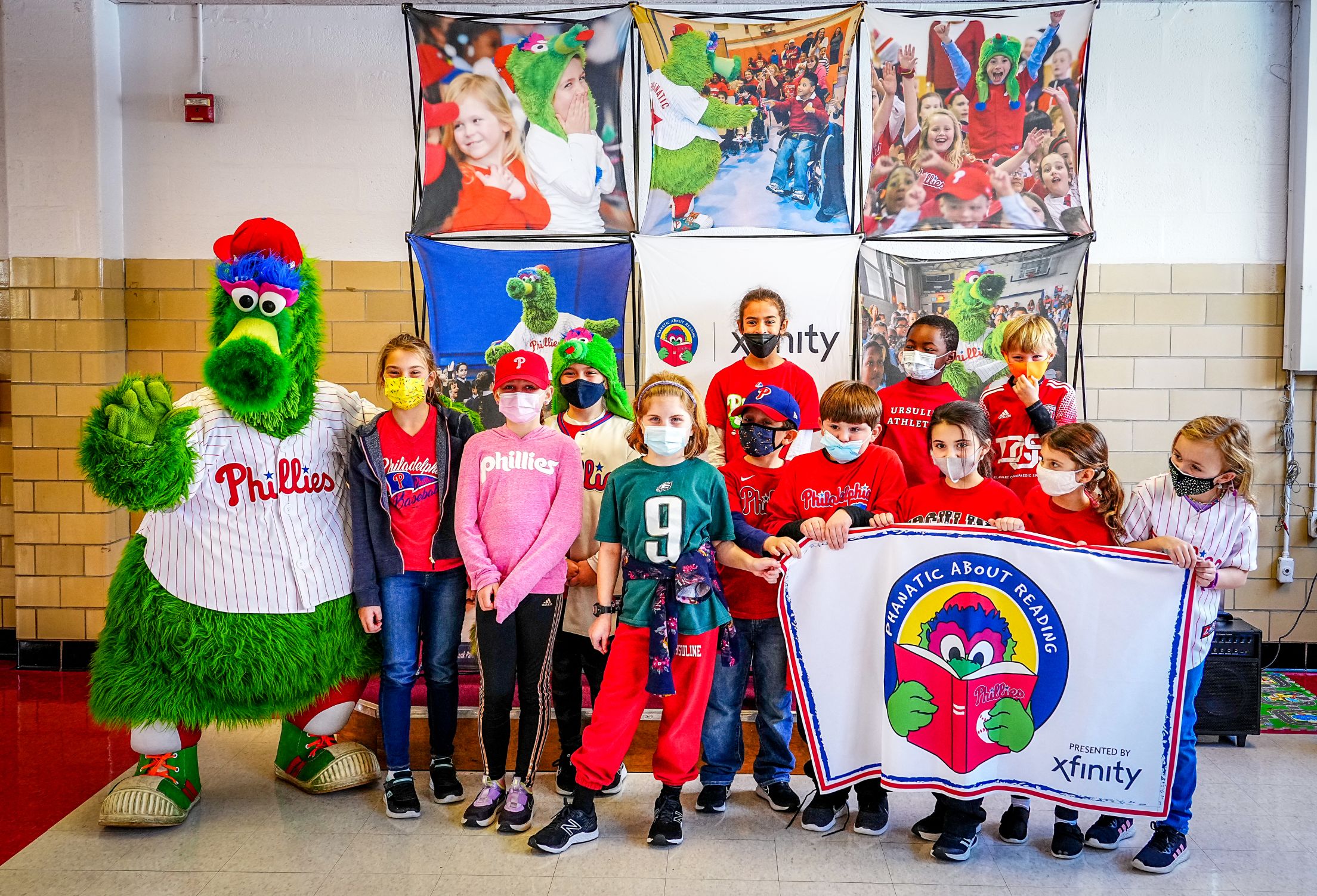 Ursuline Academy, one of the top-performing classrooms in the Phanatic About Reading program presented by Xfinity, received a special visit from the Phillie Phanatic, who held a fun reading event for its students. The event was part of the Phillies free reading program, which encourages students in grades Pre-K through 8 to read for a minimum of 15 minutes a day to improve literacy skills.