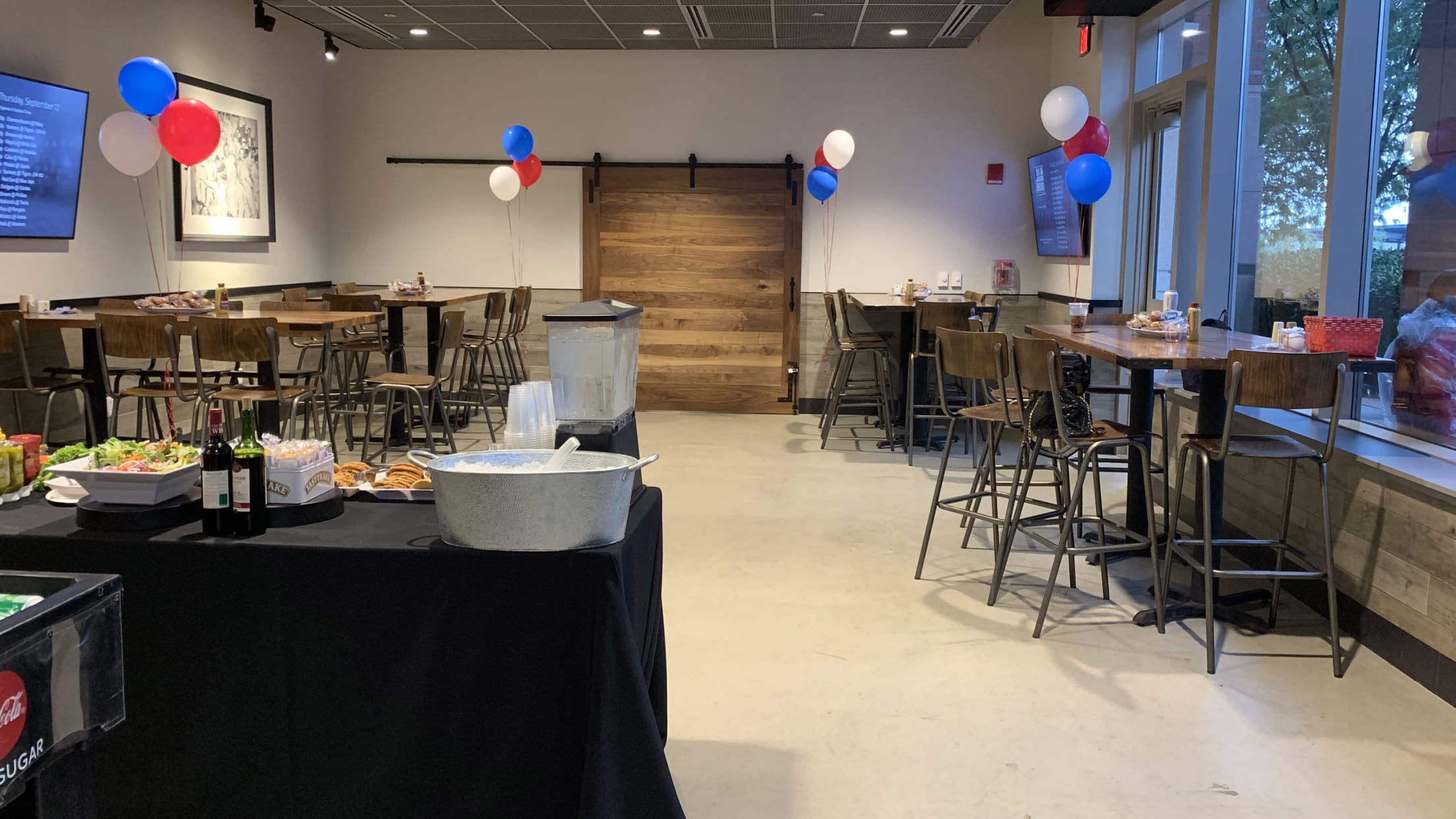 Enjoy the buzz and ambiance of Pass and Stow with a private party. The catering space features natural light, multiple TV's, bar height pub furniture, and a climate-controlled area within the larger restaurant.