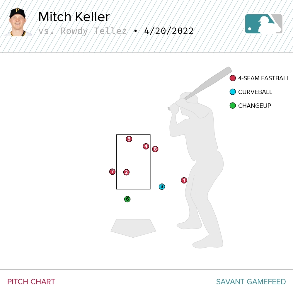 During his next at-bat against Tellez, Keller learned his lesson and threw three straight changeups in a four-pitch at-bat. Tellez grounded out.