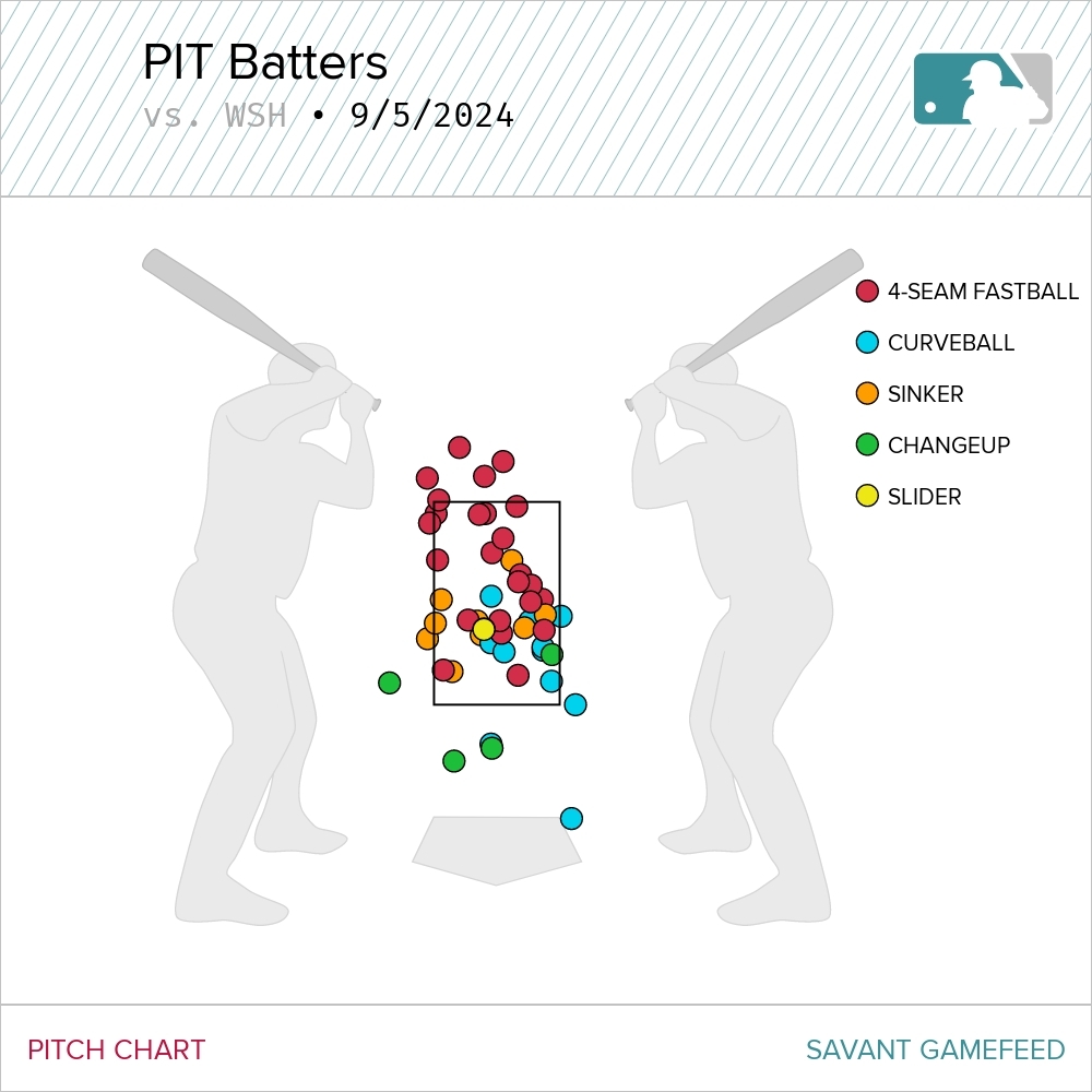Rather than chase, most of the lineup seemed to have a good read on Nationals starter Jake Irvin’s curveball. Jared Triolo, Isiah Kiner-Falefa and Bryan Reynolds all jumped on curveballs in the zone for RBI hits in the second inning, before Nick Gonzales stayed on a 2-2 sinker and shot it to right field for a two-run single, which would prove to be the winning runs.