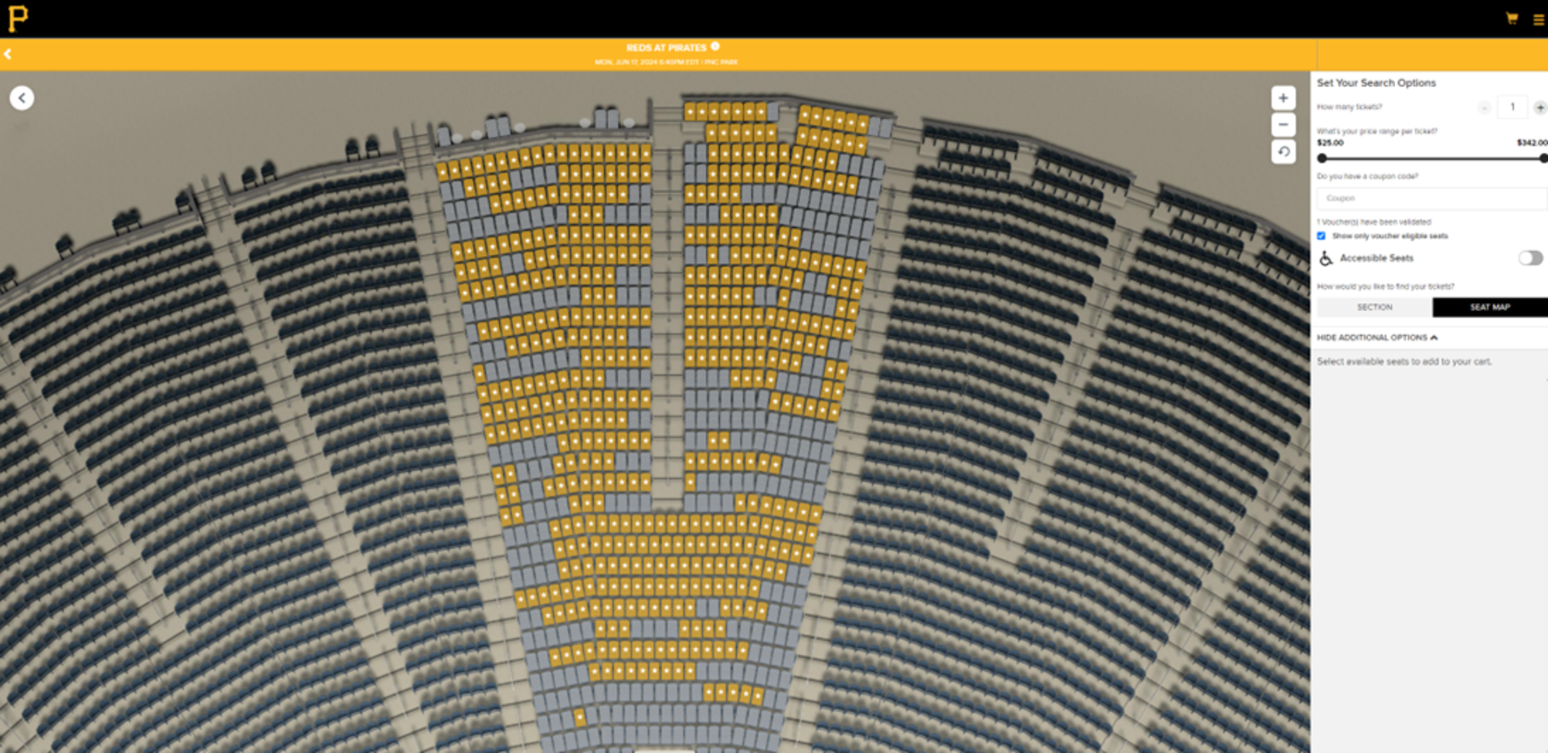 Note: Even if you upgrade your location, you still use your original ticket to enter the ballpark; then use your upgrade screen to access your seat location.