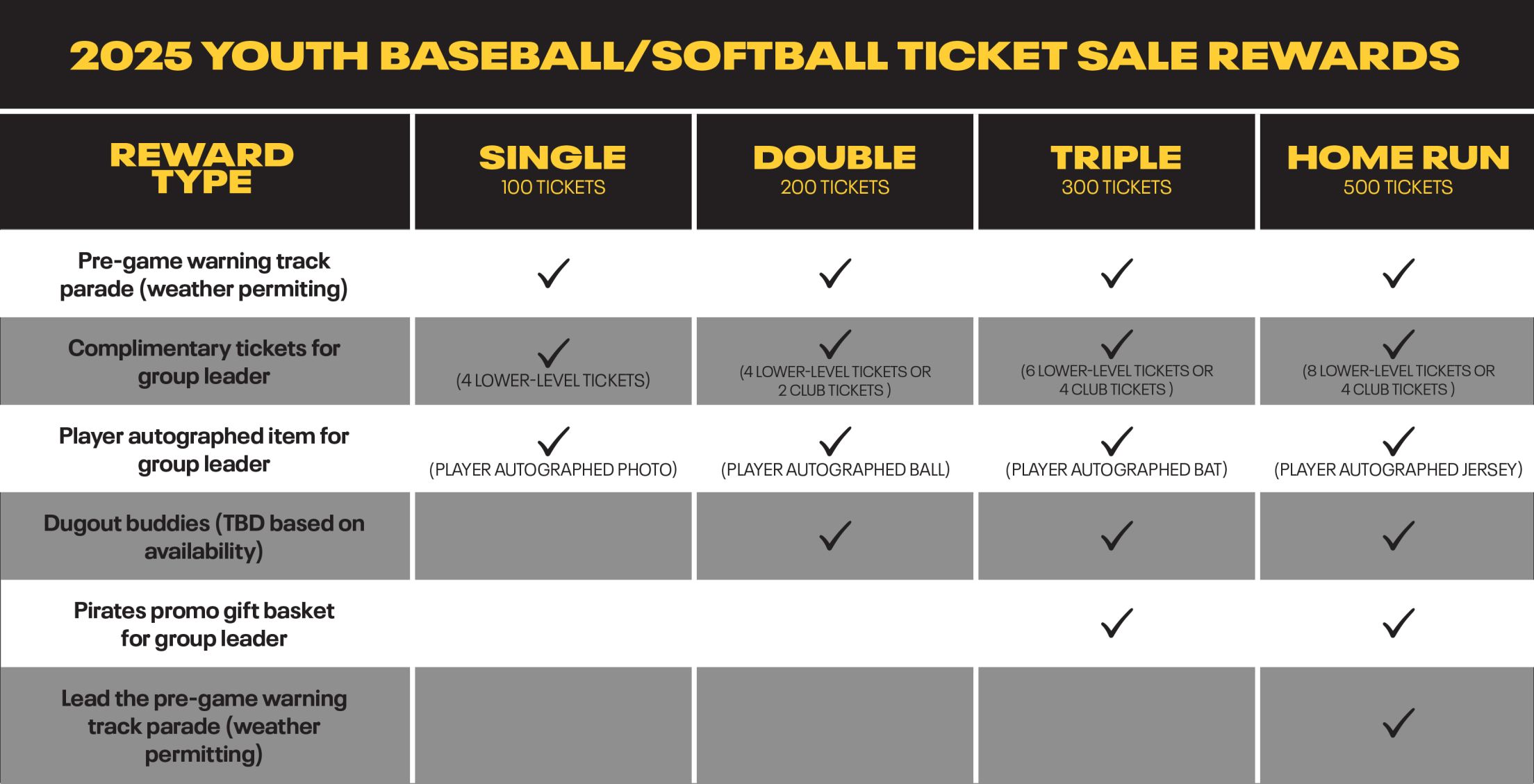 Take advantage of our special group offer by contacting GroupTickets@pirates.com.