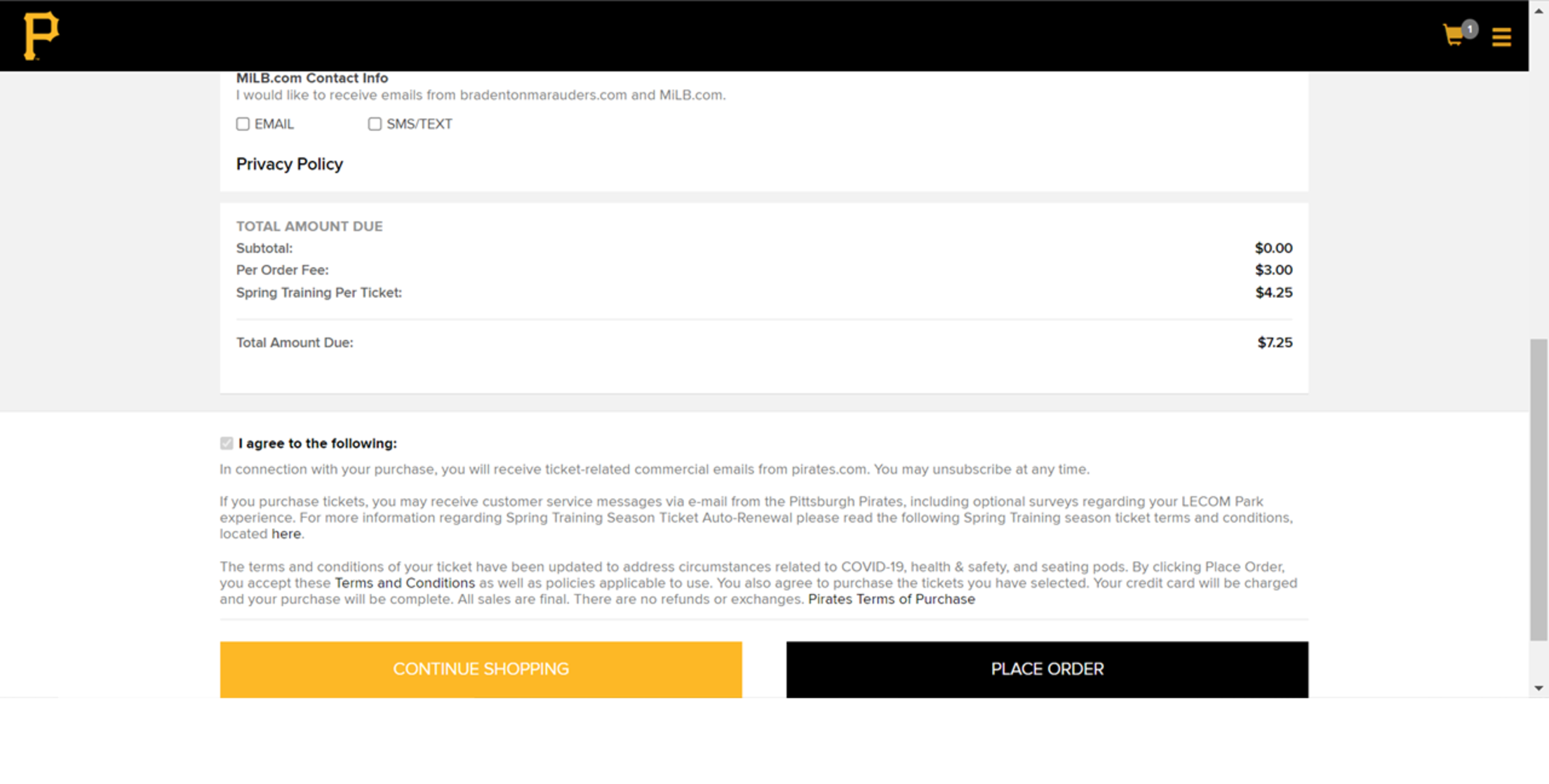 Once you have completed your transaction you will receive a confirmation email. You will be able to view your ticket inventory in your My Tickets account, or by using the MLB Ballpark app after redeeming vouchers. If you are viewing your My tickets account on a mobile device, you can access your ticket on that device and use it for entry at the LECOM Park.