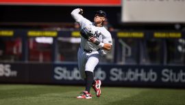 In 112 games with the Yankees (88 starts in RF, 19 at DH, 1 in CF), hit .278 (115-for-413) with 77R, 22 doubles, 27HR, 67RBI, 76BB and 6SB…the Yankees went 21-6 when he homered in 2018...Was a finalist for the AL Gold Glove Award in RF...Hit .352/.471/.699 (69-for-196) with 47R, 14 doubles, 18HR, 45RBI and 20 multi-hit games in 56 contests at Yankee Stadium…did not go consecutive home games without a hit over a 59-game stretch at Yankee Stadium (9/17/17-7/26/18)…hit safely in 17 consecutive home games from 9/17/17-4/16/18…had at least 1RBI in a franchise-record 14 straight home games from 9/18/17-4/7/18…was tied for the fourth-longest such streak in the Majors since RBI became an official statistic in 1920...Appeared in each of the Yankees' first 56 games of the season (3/29-6/4 G2)...Hit 25HR before the All-Star break, becoming the fourth player to hit at least 25HR before the break in two different seasons as a Yankee and just the second to do so in consecutive years, joining Roger Maris (1960-61), Mickey Mantle (1956 and '61) and Jason Giambi (2003 and '06)...Had a career-long 14-game hitting streak from 9/17/17-3/29/18…had an eight-game streak of drawing at least one walk from 9/24/17-3/29/18, matching the longest streak of his career...Made his first Major League start (and appearance) in CF in 3/31 loss at Toronto...Reached base safely in 23 of his 25 games in April (all except 4/27 and 4/29 at Los Angeles-AL), including each of his first 21 games of the month...Was 3-for-3 with an HR off Red Sox starter Chris Sale on 4/10…entered 0-for-12 with 10K in his career vs. Sale…became the first player to record 3H off Sale in one game since he joined the Red Sox before the 2017 season…prior to Judge, the last player with a three-hit game vs. Sale was Detroit's Miguel Cabrera, who went 4-for-4 with two solo HRs against Sale on 9/5/16 at Chicago-AL...Celebrated his 26th birthday on 4/26…his 63 career homers prior to turning 26 rank 13th in franchise history and are fifth-most in the last 50 years (Mattingly-94, Murcer-77, Jeter-70, Sánchez-71)...Had at least 1RBI in seven straight games from 5/6-13 (14RBI), tying the longest RBI streak of his career (also 7G: 9/24-30/17)...Hit game-winning two-run HR in the 13th on 6/6 at Toronto…was his first career extra-inning HR and was the latest Yankees HR to break a 0-0 tie since Alex Rodriguez's 15th-inning two-run "walk-off" HR on 8/7/09 vs. Boston...Hit game-winning solo HR in the eighth inning on 6/9 at the Mets…was the third straight game the Yankees hit a go-ahead HR in the eighth-inning-or-later, their first time doing so since 8/29-31/77 (three straight - Chambliss, Rivers and Nettles)…Judge hit two of those homers after having just one go-ahead HR in the eighth-inning or-later over his first 239 career games...Started in LF and went 1-for-2 with 1R, 1HR, 1RBI and 1BB in the AL's All-Star Game win on 7/17…his solo HR off Scherzer to lead off the second inning was the first of 10HR hit in the game and the first All-Star homer by a Yankee since Jason Giambi in 2003…became the third Yankee to homer in an All-Star Game at age 26-or-younger, joining Joe DiMaggio (1936) and Mickey Mantle (1955 and '56)…was selected by fans to his second straight AllStar team…is one of five position players drafted by the Yankees to make the All-Star team multiple times as a Yankee (also Thurman Munson, Don Mattingly, Derek Jeter and Jorge Posada)…received a fan-elected starting assignment for the second straight year and is the first Yankee to start at least two straight ASGs since Robinson Canó (2010-13) and first Yankees OF to start two straight since Curtis Granderson (2011-12)...Was 1-for-1 with 1R in 7/26 win vs. Kansas City before being removed from the game in the fourth for PH (Andújar) after being hit by a pitch in the first inning…underwent an MRI at NewYork-Presbyterian Hospital and was diagnosed with a chip fracture of the right wrist (ulnar styloid bone)…was placed on the 10-day disabled list with the injury from 7/27-9/14 (missed 45 team games)…in a simulated game at Yankee Stadium on 9/17, had 11 live at-bats off of RHP A.J. Cole, RHP Chance Adams and minor-league LHP Phillip Diehl...Hit the Yankees' 264th home run of the season with a solo HR in the eighth inning of 9/28 win at Boston, tying the single-season Major League record (1997 Seattle Mariners)…was his first HR since 7/21 vs. the Mets, snapping a 15-game homerless stretch (49AB) and 11-game stretch without a homer since returning from the D.L...Hit .421/.500/.947 (8-for-19) with 6R, 1 double, 3HR, 4RBI and 3BB in five postseason games…homered in each of the first 3G, joining Hank Bauer (1958 World Series Games 1-3) as the only Yankees to homer in each of the team's first three postseason games in a year (note: Johnny Mize homered in 1952 World Series Games 3-5 after missing the first 2G of the Series)…became the third player to begin a postseason with 3G with at least 2H and 1HR, joining St. Louis' Matt Carpenter in 2014 and the Yankees' Hank Bauer in 1958...Hit a two-run HR in the first inning of the Wild Card Game…with an exit velocity of 116.1 mph, was briefly the hardest-hit postseason HR of the Statcast era (since 2015), until Stanton's HR surpassed it later in the game...Set a postseason career high in hits in ALDS Game 1 at Boston, going 3-for-5 with a ninth-inning solo HR.