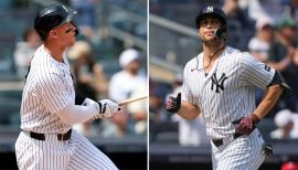 In 155 games with the Yankees (141 starts in RF, 10 at DH), hit .284 (154-for-542) with 128R, 24 doubles, 3 triples, 52HR, 114RBI, 127BB and 9SB... according to MLB Statcast, had a 94.9 mph average exit velocity on balls in play, highest among all Major League hitters…his solo HR on 6/10 vs. Baltimore had an exit velocity of 121.1 mph, setting a record for hardest hit HR in the Statcast-era (since 2015)…received his first career Silver Slugger Award... Placed second in AL Most Valuable Player voting, totaling 279 points (2 first place votes, 27 second place votes, 1 third place vote)…is the second rookie all time to finish second in MVP voting, joining Mike Trout in 2012 (won by Miguel Cabrera)…only two rookies (in either league) have won the award: Boston's Fred Lynn in 1975 and Seattle's Ichiro Suzuki in 2001 both won the AL MVP as rookies... Was unanimously named AL Jackie Robinson "Rookie of the Year" by the BBWAA…was the ninth Yankee to win the award and second by a unanimous vote (also Derek Jeter in 1996)…was the only player listed on every ballot... Was named MLB "Rookie of the Year" by Baseball America, the first Yankee to win the award since Derek Jeter (1996)…was also named 2017 Sporting News AL "Rookie of the Year," as voted on by a panel of AL players…was selected to the Topps MLB All-Star Rookie Team... Led the American League in runs scored (128, 2nd MLB), home runs (52, 2nd MLB), walks (127, 2nd MLB) and and ranked second in RBI (114, 6th MLB), on-base pct. (.422, 3rd MLB) and slugging pct. (.627, 2nd MLB)…led the Majors with an 8.2 WAR, the highest by a Yankee since Alex Rodriguez in 2007 (9.6)... With a 1.049 OPS, was the fourth rookie in the Modern Era (since 1900) with an OPS of 1.000-or-better: St. Louis' Albert Pujols (1.013) in 2001, Boston's Ted Williams (1.045) in 1939 and Cleveland's Joe Jackson (1.058) in 1911... Had 186 balls hit at least 95 mph, accounting for 55.0% of his balls put in play, the highest pct. in the Majors…hit 7HR with an exit velocity of 117 mph or higher (rest of the Majors: two, both by Giancarlo Stanton)... Became the 13th Yankee to lead the AL (or tie for the lead) in home runs and first since Mark Teixeira (tied) in 2009…is the first Yankee to lead outright since Alex Rodriguez in 2007... Held at least a share of the AL HR lead every day from 5/28 through the end of the season except one (end of play on 9/6)…hit a total of 39HR in 217 minor league games in 2015-16 (also hit 4HR with the Yankees in 2016)... His 52HR were the most ever by a Major League rookie (Mark McGwire, 49HR in 1987) and surpassed Joe DiMaggio (29HR in 1936) for most by a Yankees rookie... His 52HR were tied with Mickey Mantle (52HR in 1956) and Alex Rodriguez (52HR in 2001) for third-most by a player 25-or-younger in Baseball history, trailing only Jimmie Foxx (58HR in 1932) and Babe Ruth (54HR in 1920)…was the fifth Yankee age 25-or-younger to hit at least 40HR in a season... Tied Mickey Mantle (52HR in 1956) for the eighth-most single-season homers in Yankees history and had the second-most by a right-handed hitter (Alex Rodriguez-54HR in 2007)... Homered against every AL opponent, the first Yankee to do so since the AL expanded to 15 teams in 2013... Had 33HR at Yankee Stadium, most by a Yankee in a single season at a home venue in franchise history, ahead of Babe Ruth (32 in 1921)…in 77 home games, hit .312/.440/.725 (84-for-269) with 73R, 10 doubles, 33HR, 68RBI and 62BB... Had seven multi-HR games (all 2HR games): 4/28 vs. Baltimore, 5/2 vs. Toronto, 6/11 vs. Baltimore, 9/10 at Texas, 9/14 vs. Baltimore, 9/24 at Toronto and 9/25 vs. Kansas City)…were tied with several others for fourth-most by a Yankee in a single season (three tied with 8G: Alex Rodriguez-2007, Mickey Mantle-1961 and Babe Ruth-1927)…matched Mark McGwire (7G in 1987) for the most ever by a Major League rookie in a single season…were tied for the fifth-most in a season by any player, age 25-or-younger behind only Ralph Kiner (10G in 1947), Willie Mays (9G in 1955), Reggie Jackson (8G in 1969) and Vladimir Guerrero (8G in 2000)... With Gary Sánchez (four), became the second pair of Yankees teammates, each age 25-or-younger, with at least four multi-HR games in the same season (DiMaggio/Gordon, four each in 1939)... Had 52HR, while Gary Sánchez had 33HR…was just the second time in Yankees history that two teammates, age 25-or-younger, hit at least 30HR in the same season, joining Joe DiMaggio (31HR) and Joe Gordon (30HR) in 1940…with a combined 85HR, set the Major League record for homers by two teammates, each 25-or-younger (surpassed the 2007 Milwaukee Brewers' Prince Fielder-50 and Ryan Braun-34)... According to Elias, was the first rookie in Major League history to be the first player to reach 20HR in a season (reached on 6/11)…was the first Yankees batter to do so since Alex Rodriguez in 2007... Hit 30HR before the All-Star Game, one of two rookies ever to reach 30HR prior to the All-Star break (since 1933), joining Mark McGwire (33 in 1987)…is one of three Yankees ever to hit at least 30HR by the break, joining Roger Maris (33HR in 1961) and Alex Rodriguez (30HR in 2007)…marked the seventh time a Yankee led the Majors in homers at the All-Star break (since 1933): Rodriguez (30) in 2007, Maris (33) in 1961, Maris (27) in 1960, Mantle (29) in 1956, DiMaggio/Keller (19 each) in 1941 and DiMaggio (20) in 1937... The Yankees went 31-14 when he homered in 2017…won each of the first 12 such games from 4/9-5/14 (G1)... His 128R were most by a Major League rookie since Mike Trout in 2012 (129R)…were second-most by a Yankees rookie (Joe DiMaggio-132R in 1936)…the Yankees went 58-27 when he scored a run... His 114RBI were most by a Yankee since Curtis Granderson (119) and Robinson Canó (118) in 2011…the Yankees were 44-20 when he had at least 1RBI and 23-5 when he had multiple RBI... Is the fourth rookie in Yankees history with at least 100RBI in a