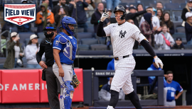 Won his third career American League MVP and his first career batting title after hitting .331/.457/.688 (179-for-541) with 137 run, 30 doubles, two triples, 53 HR, 114 RBI, 124 BB/36 IBB, seven HBP, seven SF and 12 SB in 152 games...reached base safely in 136 of his 152 games...set career highs in BA, runs scored and IBB...made 95 starts in right field and made 56 starts as the DH...Became only the fourth player in franchise history to win the AL MVP at least three times, joining Mickey Mantle (three times), Yogi Berra (three times) and Joe DiMaggio (three times)...became only the fourth Yankee to win the AL MVP in consecutive seasons, joining Roger Maris (1960-61), Mantle (1956-57) and Berra (1954-55)...Won his fifth career Silver Slugger Award (also 2017, '21-22, '24)...was named the AL Hank Aaron Award winner for the second straight season and the third time in his career (also 2022 and '24)...the award recognizes the most outstanding regular season offensive performer in each league...is the only Yankee and only the fourth Major League player to win the award at least three times since it was first presented in 1999...was named a member of the All-MLB First Team...Led the Majors in BA (.331), OBP (.457), SLG (.688), OPS (1.144), times on base (310), intentional walks (36) and WAR (10.1 - FanGraphs), ranked second in runs scored (137, first in AL), total bases (372, first in AL), walks (124, first in AL), XBH (85, first in AL) and go-ahead RBI (31, second in AL), fourth in home runs (53, second in AL), tied for fourth in hits (179, third in AL) and game-winning RBI (17, tied for third in AL), fifth in RBI (114, second in AL) and tied for fifth in multi-hit games (51, tied for fourth in AL)…Led the Majors in OPS by 130 points and the AL in OPS by 185 points...led the Majors in SLG by 66 points and the AL in SLG by 99 points...led the Majors and the AL in OBP by 58 points...led the Majors and the AL in BA by 20 points...led the Majors in times on base by 26 and the AL in times on base by 51...led the Majors and the AL in fWAR by 1.0...led the Majors and the AL in intentional walks by 14 IBB...led the AL in walks by 27BB...led the AL in runs scored by 27R...led the AL in total bases by 21...Became only the third player in Major League history to hit at least 50 HR and win a batting title in the same season, joining Mickey Mantle (1956) and Jimmie Foxx (1938)...his 53 HR were the most by any player who has won a batting title...Was only the fifth player in the Expansion Era (since 1961) to lead the Majors in BA, OBP and SLG in a single season, joining Miguel Cabrera in 2013, Barry Bonds in 2002, Larry Walker in 1999 and George Brett in 1980...Became the fifth player in franchise history to lead the Majors in batting average, joining DJ LeMahieu (.364 BA in 2020), Mickey Mantle (.353 BA in 1956), Joe DiMaggio (.381 BA in 1939) and Lou Gehrig (.363 BA in 1934)...became the 10th player (11th time) in franchise history to win the AL batting title...joined DJ LeMahieu (2020), Bernie Williams (1998), Paul O’Neill (1994), Don Mattingly (1984), Mickey Mantle (1956), Snuffy Stirnweiss (1945), Joe DiMaggio (1939-40), Lou Gehrig (1934) and Babe Ruth (1924)...At 6-foot-7, became the tallest batting champion in Major League history...Hit at least 50 HR in a single season for the fourth time in his career (also 52 HR in 2017, 62 HR in 2022 and 58 HR in 2024), tying the Major League record for most 50HR seasons...is the fourth player — and second Yankee — to record four such seasons, joining Sammy Sosa (4x: 1998-2001), Mark McGwire (4x: 1996-99) and Babe Ruth (4x: 1920-21, ‘27-28). 4 Hit .340/.513/.642 (36-for-106) with eight doubles, eight HR, 57 RBI, 43 BB/28 IBB, two HBP and seven SF with RISP, leading the Majors in OBP and OPS (1.154), and ranking fourth in SLG (second in AL)...His Major League-leading 36 IBB were the most in AL history (since 1955 when IBB were first tracked)...recorded more IBB than any of the other 29 teams in the Majors (next closest: Los Angeles-NL: 33IBB)...marked the most by any Major League player in a single season since 2010 when St. Louis' Albert Pujols recorded 38 IBB...Reached base multiple times in a Major League-leading and career-high 101 games...his 101 games were the second-most by a Yankee in the last 68 years (since 1958), trailing only Derek Jeter’s 104 games in 1999...is one of five Yankees to reach base multiple times in at least 101 games in a season, joining Babe Ruth (nine times), Lou Gehrig (six times), Jeter (once) and Mickey Mantle (once)...is one of only three AL players in the last 24 years (since 2002) to reach base multiple times in as many games in a season, joining Mike Trout (106 games in 2013) and Miguel Cabrera (111 games in 2011)...Reached base at least three times in a Major League-leading 51 games, matching the second-most by an AL player in the last 24 years (since 2002), trailing his own 57 games in 2024...28 of his 53HR either tied the game (four) or gave the Yankees the lead (24)…his 24 go-ahead home runs were the most in the Majors...Recorded double-digit stolen bases for the third time in his career (also 16 SB in 2022 and 10 SB in '24)...is the only player in Major League history to hit at least 50 HR and record at least 10SB in at least three seasons...Posted a Major League-best 1.144 OPS…was one of only two Yankees (fourth time) to post as high of an OPS in the last 89 years (since 1937), joining Mickey Mantle (1.177 OPS in 1957 and 1.169 OPS in 1956) and his own 1.159 OPS in 2024...was the second-highest OPS by a Major League player in a 162-game season since 2005, trailing his own 1.159 OPS in 2024...marked the third time in his career he led the Majors in OPS (also 2022 and '24)...is one of six Yankees to lead the Majors in OPS and one of four to do so three times, joining Babe Ruth (nine times), Mickey Mantle (three times), Lou Gehrig (three times), Don Mattingly and Alex Rodriguez...Recorded a Major League-best 