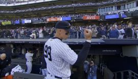 In 112 games with the Yankees (88 starts in RF, 19 at DH, 1 in CF), hit .278 (115-for-413) with 77R, 22 doubles, 27HR, 67RBI, 76BB and 6SB…the Yankees went 21-6 when he homered in 2018...Was a finalist for the AL Gold Glove Award in RF...Hit .352/.471/.699 (69-for-196) with 47R, 14 doubles, 18HR, 45RBI and 20 multi-hit games in 56 contests at Yankee Stadium…did not go consecutive home games without a hit over a 59-game stretch at Yankee Stadium (9/17/17-7/26/18)…hit safely in 17 consecutive home games from 9/17/17-4/16/18…had at least 1RBI in a franchise-record 14 straight home games from 9/18/17-4/7/18…was tied for the fourth-longest such streak in the Majors since RBI became an official statistic in 1920...Appeared in each of the Yankees' first 56 games of the season (3/29-6/4 G2)...Hit 25HR before the All-Star break, becoming the fourth player to hit at least 25HR before the break in two different seasons as a Yankee and just the second to do so in consecutive years, joining Roger Maris (1960-61), Mickey Mantle (1956 and '61) and Jason Giambi (2003 and '06)...Had a career-long 14-game hitting streak from 9/17/17-3/29/18…had an eight-game streak of drawing at least one walk from 9/24/17-3/29/18, matching the longest streak of his career...Made his first Major League start (and appearance) in CF in 3/31 loss at Toronto...Reached base safely in 23 of his 25 games in April (all except 4/27 and 4/29 at Los Angeles-AL), including each of his first 21 games of the month...Was 3-for-3 with an HR off Red Sox starter Chris Sale on 4/10…entered 0-for-12 with 10K in his career vs. Sale…became the first player to record 3H off Sale in one game since he joined the Red Sox before the 2017 season…prior to Judge, the last player with a three-hit game vs. Sale was Detroit's Miguel Cabrera, who went 4-for-4 with two solo HRs against Sale on 9/5/16 at Chicago-AL...Celebrated his 26th birthday on 4/26…his 63 career homers prior to turning 26 rank 13th in franchise history and are fifth-most in the last 50 years (Mattingly-94, Murcer-77, Jeter-70, Sánchez-71)...Had at least 1RBI in seven straight games from 5/6-13 (14RBI), tying the longest RBI streak of his career (also 7G: 9/24-30/17)...Hit game-winning two-run HR in the 13th on 6/6 at Toronto…was his first career extra-inning HR and was the latest Yankees HR to break a 0-0 tie since Alex Rodriguez's 15th-inning two-run "walk-off" HR on 8/7/09 vs. Boston...Hit game-winning solo HR in the eighth inning on 6/9 at the Mets…was the third straight game the Yankees hit a go-ahead HR in the eighth-inning-or-later, their first time doing so since 8/29-31/77 (three straight - Chambliss, Rivers and Nettles)…Judge hit two of those homers after having just one go-ahead HR in the eighth-inning or-later over his first 239 career games...Started in LF and went 1-for-2 with 1R, 1HR, 1RBI and 1BB in the AL's All-Star Game win on 7/17…his solo HR off Scherzer to lead off the second inning was the first of 10HR hit in the game and the first All-Star homer by a Yankee since Jason Giambi in 2003…became the third Yankee to homer in an All-Star Game at age 26-or-younger, joining Joe DiMaggio (1936) and Mickey Mantle (1955 and '56)…was selected by fans to his second straight AllStar team…is one of five position players drafted by the Yankees to make the All-Star team multiple times as a Yankee (also Thurman Munson, Don Mattingly, Derek Jeter and Jorge Posada)…received a fan-elected starting assignment for the second straight year and is the first Yankee to start at least two straight ASGs since Robinson Canó (2010-13) and first Yankees OF to start two straight since Curtis Granderson (2011-12)...Was 1-for-1 with 1R in 7/26 win vs. Kansas City before being removed from the game in the fourth for PH (Andújar) after being hit by a pitch in the first inning…underwent an MRI at NewYork-Presbyterian Hospital and was diagnosed with a chip fracture of the right wrist (ulnar styloid bone)…was placed on the 10-day disabled list with the injury from 7/27-9/14 (missed 45 team games)…in a simulated game at Yankee Stadium on 9/17, had 11 live at-bats off of RHP A.J. Cole, RHP Chance Adams and minor-league LHP Phillip Diehl...Hit the Yankees' 264th home run of the season with a solo HR in the eighth inning of 9/28 win at Boston, tying the single-season Major League record (1997 Seattle Mariners)…was his first HR since 7/21 vs. the Mets, snapping a 15-game homerless stretch (49AB) and 11-game stretch without a homer since returning from the D.L...Hit .421/.500/.947 (8-for-19) with 6R, 1 double, 3HR, 4RBI and 3BB in five postseason games…homered in each of the first 3G, joining Hank Bauer (1958 World Series Games 1-3) as the only Yankees to homer in each of the team's first three postseason games in a year (note: Johnny Mize homered in 1952 World Series Games 3-5 after missing the first 2G of the Series)…became the third player to begin a postseason with 3G with at least 2H and 1HR, joining St. Louis' Matt Carpenter in 2014 and the Yankees' Hank Bauer in 1958...Hit a two-run HR in the first inning of the Wild Card Game…with an exit velocity of 116.1 mph, was briefly the hardest-hit postseason HR of the Statcast era (since 2015), until Stanton's HR surpassed it later in the game...Set a postseason career high in hits in ALDS Game 1 at Boston, going 3-for-5 with a ninth-inning solo HR.